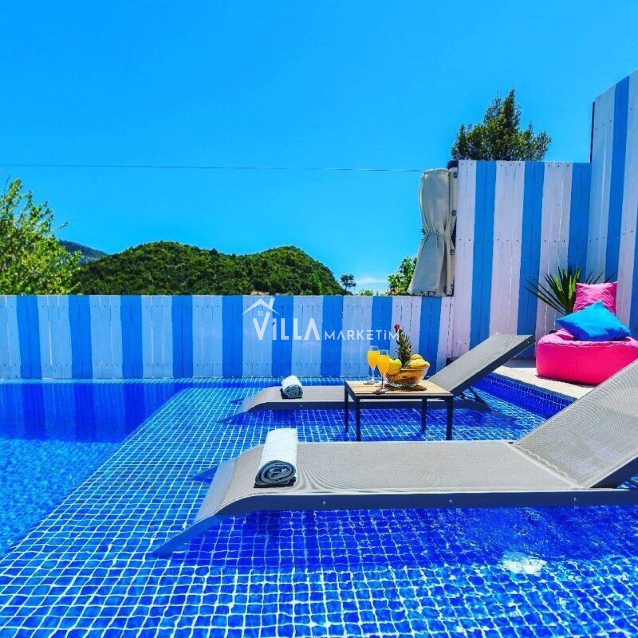 Villamızın havuzu ise etrafı dışarıdan görülmeyecek şekilde korunaklı olup sizlere huzurlu ve keyifli havuz deneyimi sunmaktadır. Size özel muhafazakâr yüzme havuzu, şezlong keyfi ve şemsiye ile yazın en güzel günlerinde sizleri bekliyor.