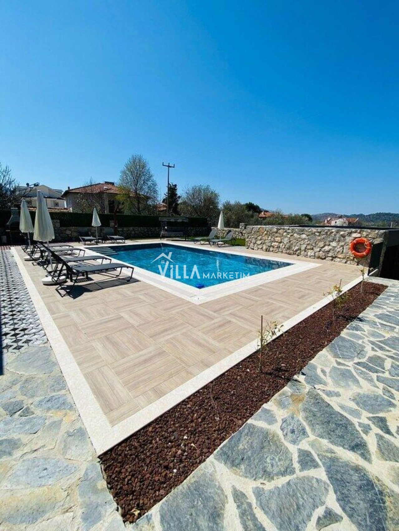 Bahçe : Özel yüzme havuzu, şezlong, şezlong sehpası, şemsiye, bahçe oturma grubu, masa ve sandalyeler, barbekü, langırt, tavla, satranç takımı, dart tahtası bulunmaktadır.