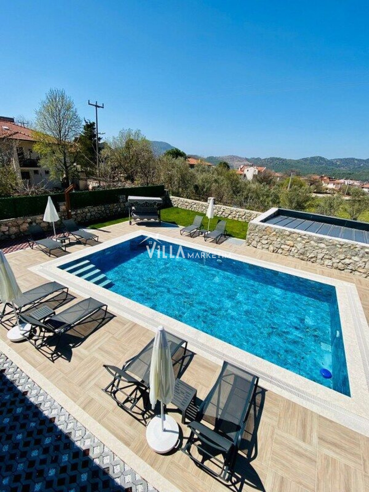 Ekstralar : Villa misafirlere temiz bir şekilde teslim edilmektedir. Bahçe & havuz bakım ve temizliği günde 1 defa yapılmaktadır.
