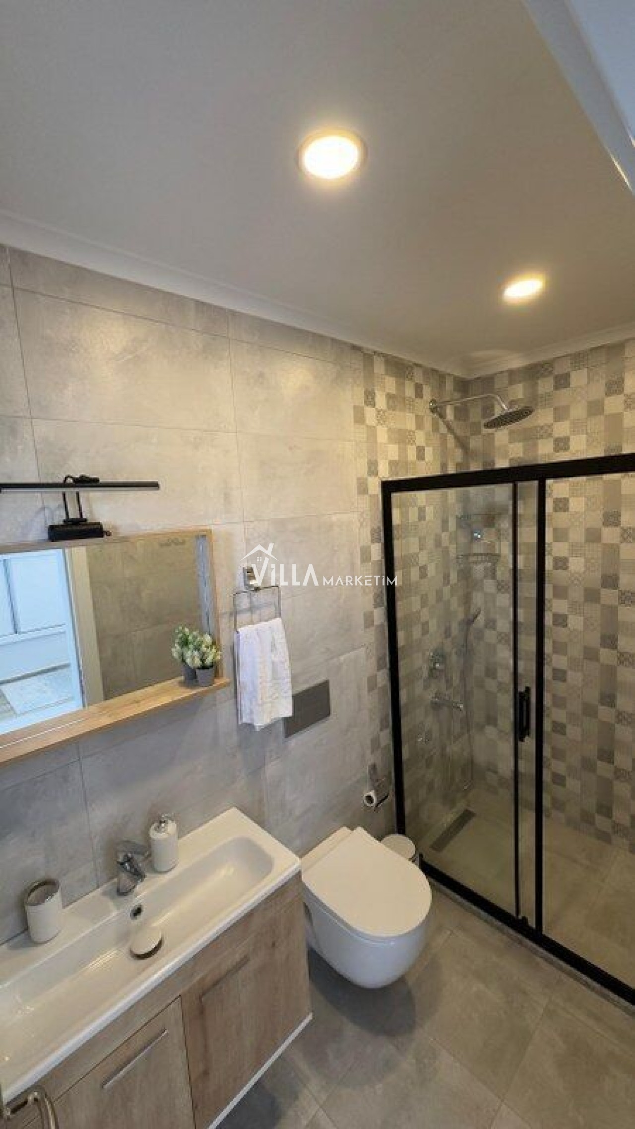 Salon: Oturma Grubu, WC, klima, LCD Tv, 8 kişilik yemek masası, ütü, ütü masası, uydu alıcısı, internet ve terasa çıkış bulunmaktadır.