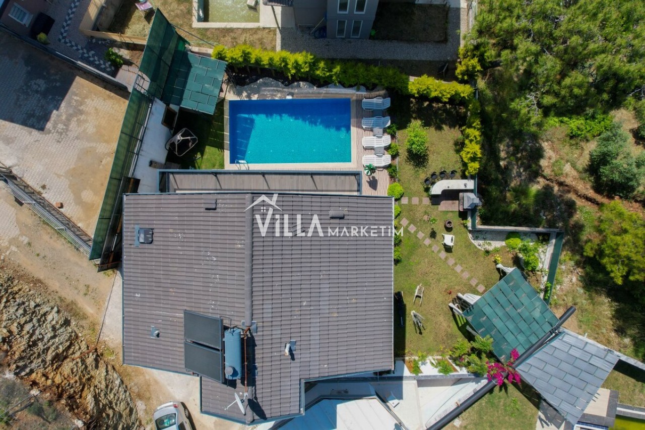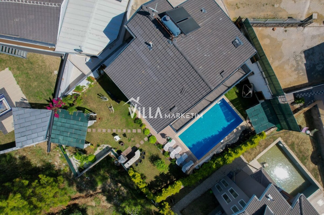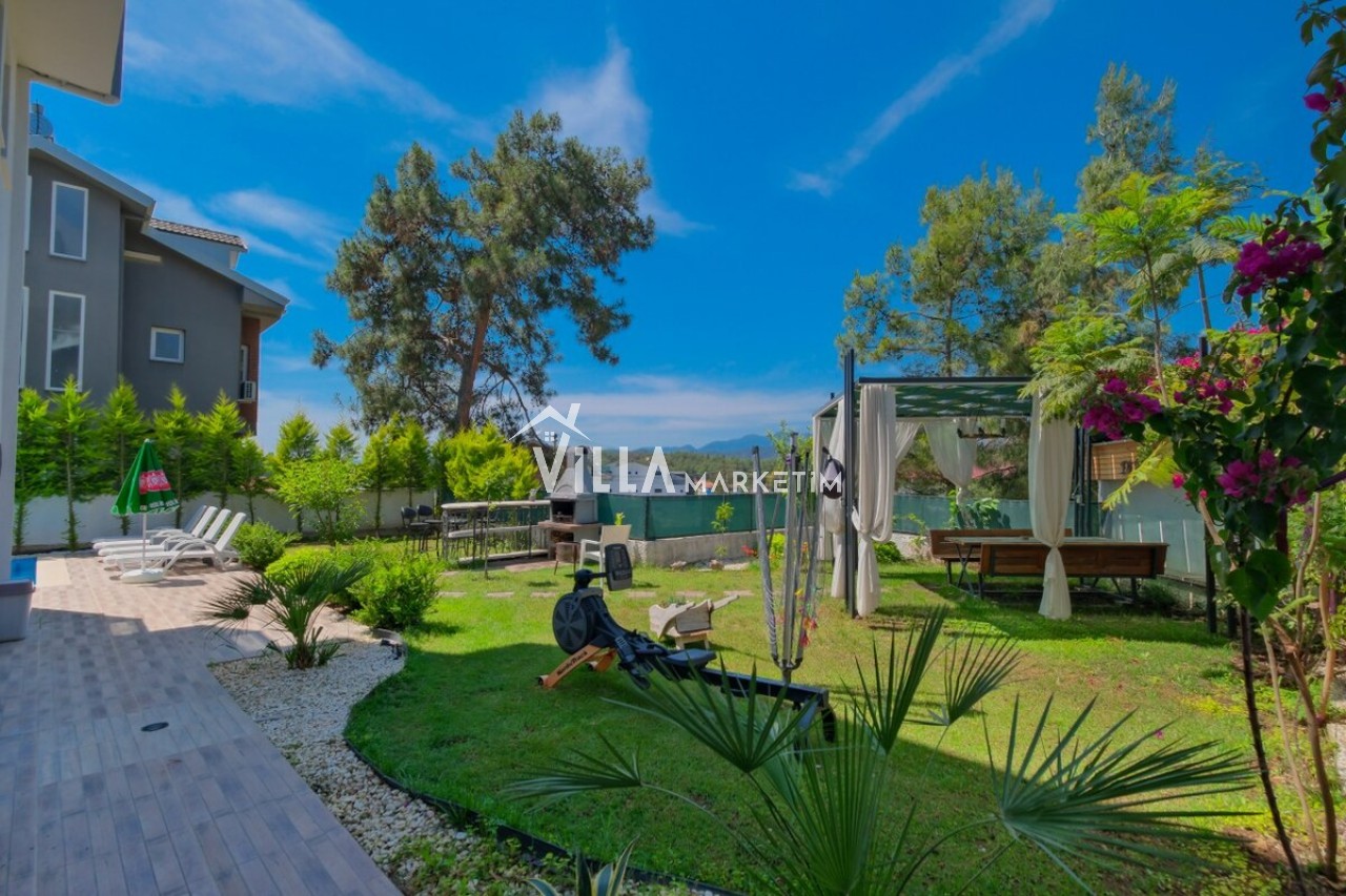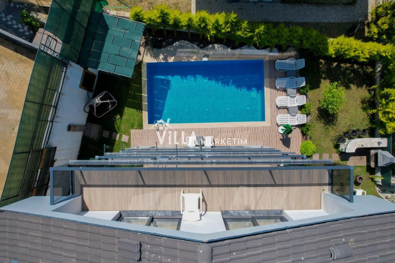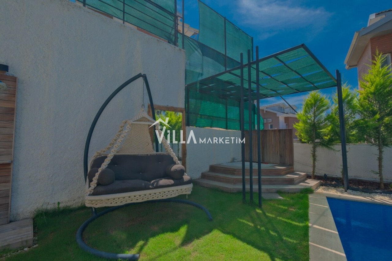 Özel Bahçe : Özel bahçede özel yüzme havuzu, masa tenisi, salıncak, şezlong, güneş şemsiyesi, bahçe oturma grubu, bahçe yemek masası, mutfak tezgahı, TV ve taş barbekü bulunmaktadır.