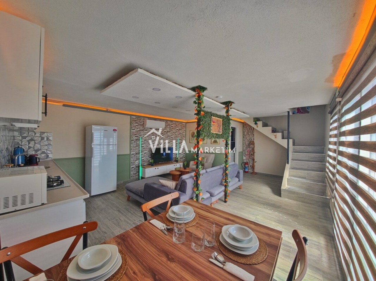 NOT : Sitemizde bulunan villa resimleri, görüntüyü ekrana sığdırmak maksadıyla 12-18 mm ’Geniş Açılı Lens’ ile çekilmektedir. Bu sebeple resimlerdeki objeler, gerçeğinden daha büyük olarak gözükebilmektedir.
