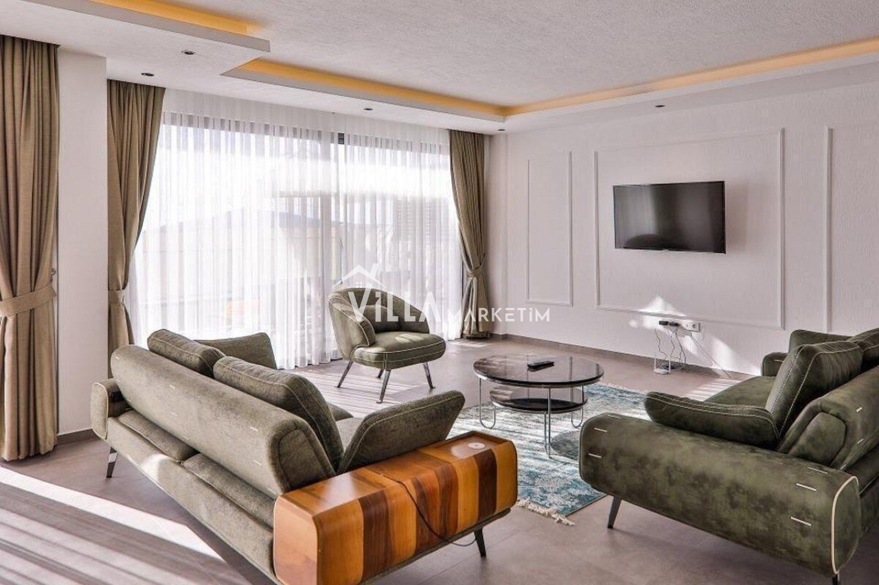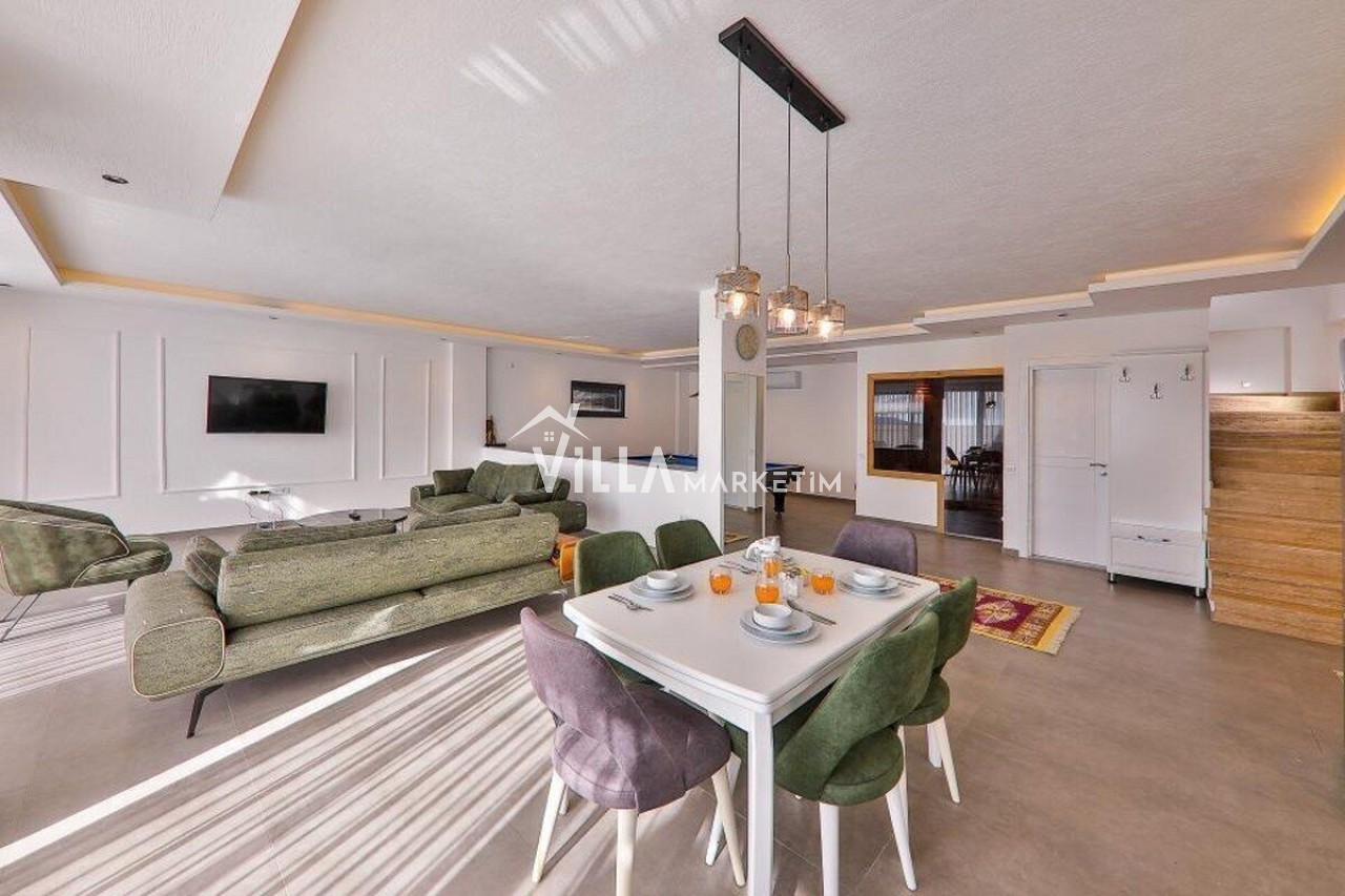 Salon : Salonda modern oturma grubu, orta sehpa, TV, kablosuz internet, klima, bilardo masası, sauna ve havuz terasına çıkış bulunmaktadır.