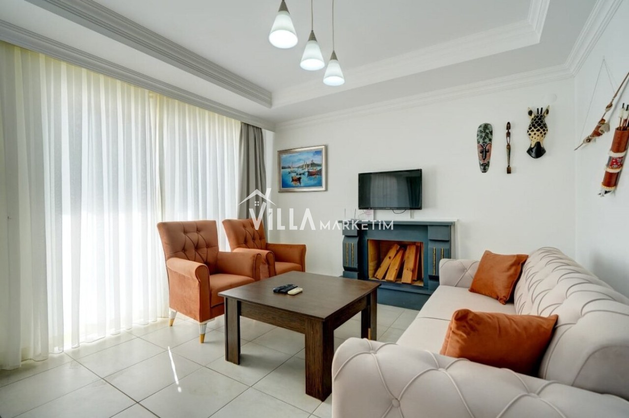 Salon : Oturma grubu, uydu TV, şömine, klima, 6 kişilik yemek masası, banyo, WC ve lavabo bulunmaktadır.