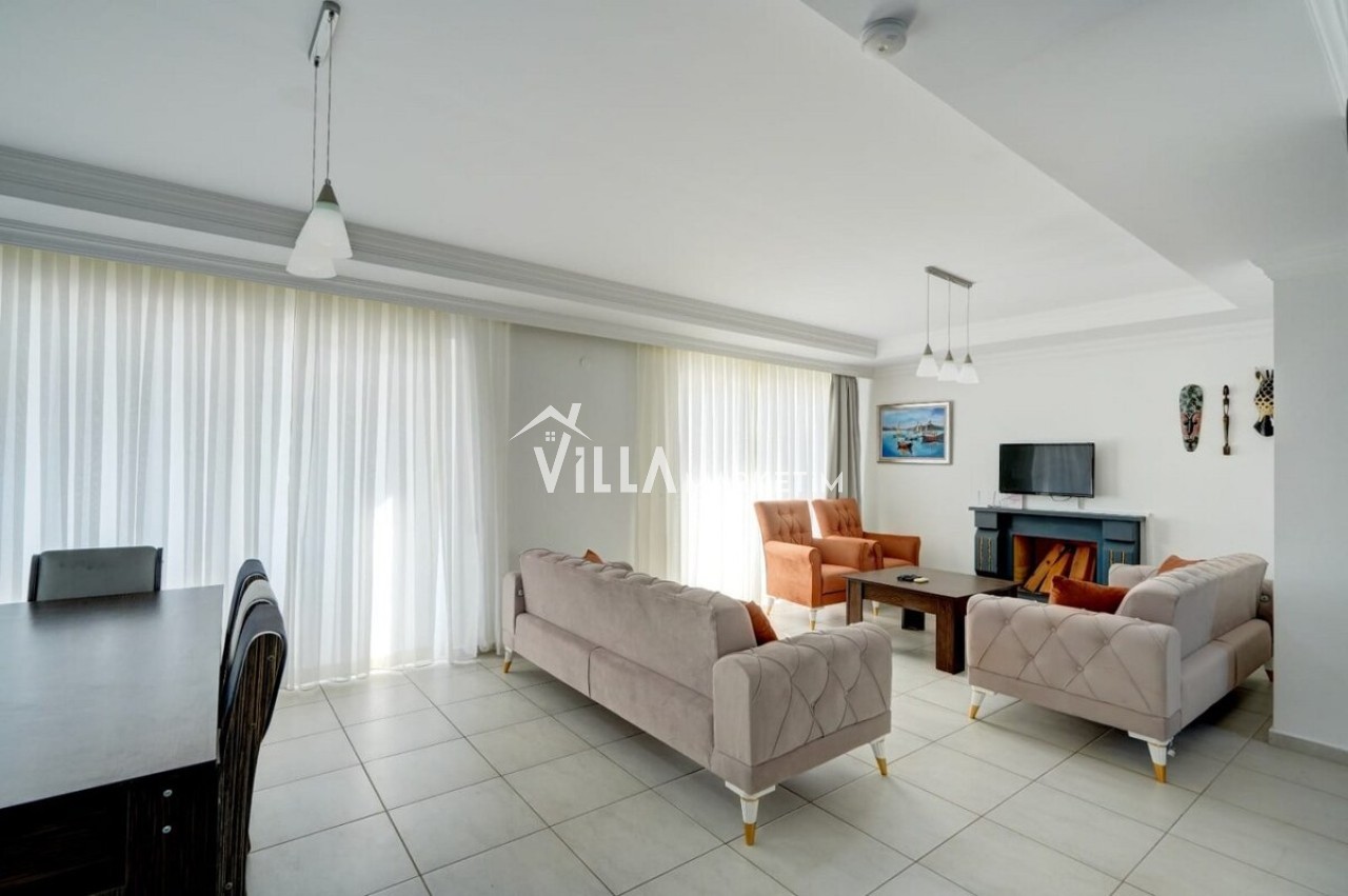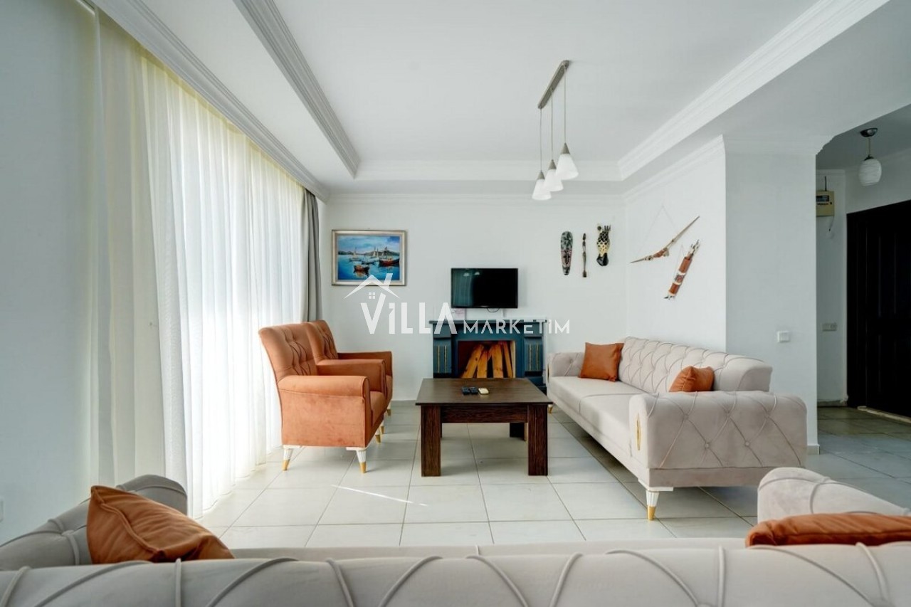 Salon : Oturma grubu, uydu TV, şömine, klima, 6 kişilik yemek masası, banyo, WC ve lavabo bulunmaktadır.