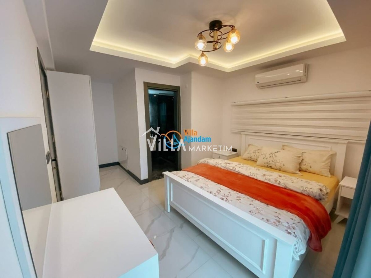 2. Yatak Odası : Çift kişilik yatak, 2 adet komodin, elbise dolabı, klima, banyo ve tuvalet bulunmaktadır.