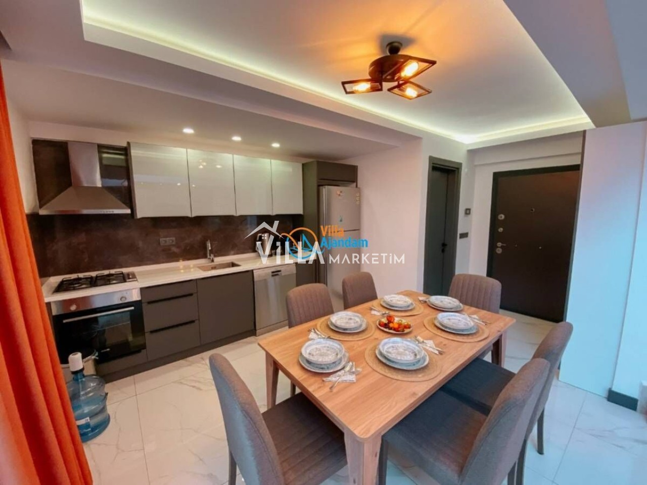 Mutfak : Buzdolabı,bulaşık makinesi, çamaşır makinesi, fırın, mikrodalga fırın, çay makinesi, kettle, kahve makinesi, tost makinesi, yemek takımı, tava, tencere, bardak, çatal bıçak seti vb ekipmanlar mevcuttur.