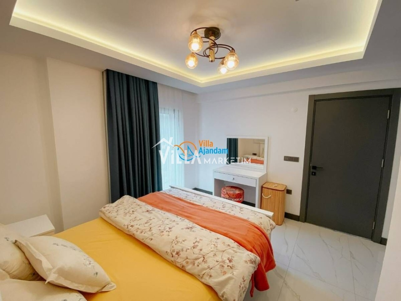 1. Yatak Odası : Çift kişilik yatak, 2 adet komodin, elbise dolabı, klima, makyaj masası , 1 adet puf , ütü masası , banyo ve tuvalet bulunmaktadır.