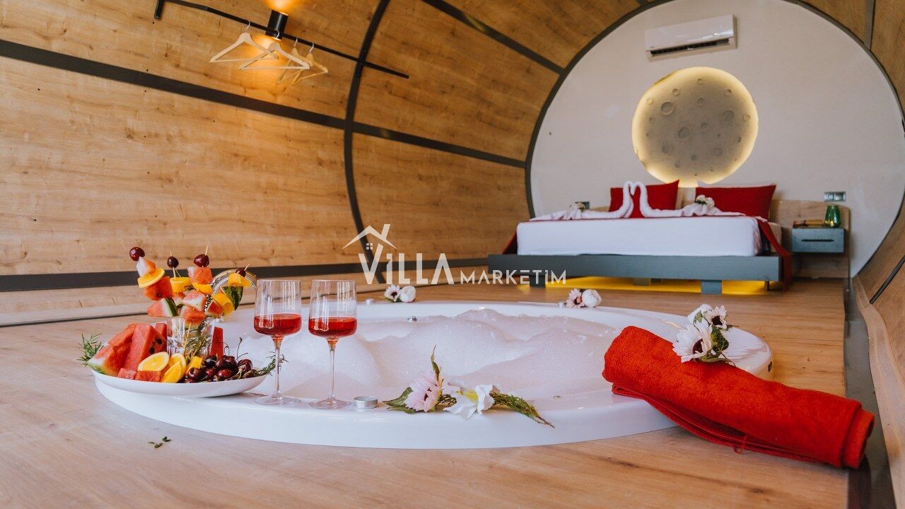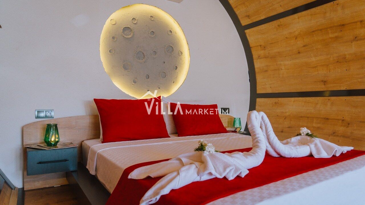 1-Yatak Odası: Klimalı suit aile yatak odasıdır. 1 adet Suit çift kişilik yatak, jakuzi, elbise dolabı ve komodin bulunmaktadır.