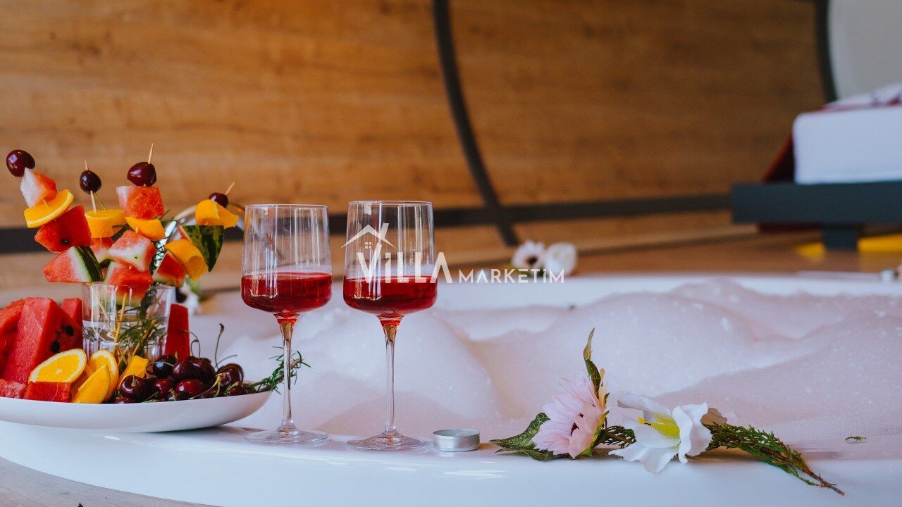NOT: Sitemizde bulunan villa resimleri, görüntüyü ekrana sığdırmak maksadıyla 12-18 mm Geniş Açılı Lensle çekilmektedir. Bu sebeple resimlerdeki objeler, gerçek boyutlarından daha büyük görünebilmektedir..