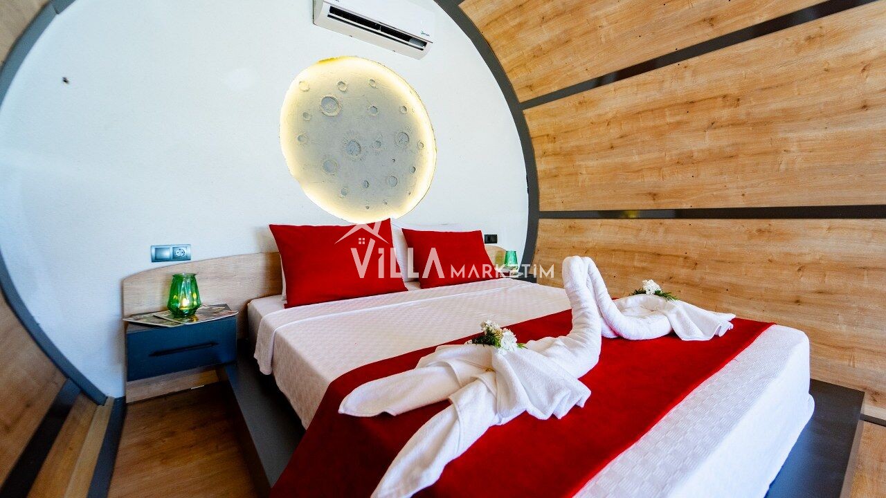 Fethiye Çalış mevkiinde bulunan bu özel bungalov, 2 yatak odasıyla 3 kişilik konaklama kapasitesine sahip olup, korunaklı havuz ve geniş bahçe alanı ile sakin bir tatil arayan misafirler için mükemmel bir seçenektir. Çekirdek aileler ve balayı çiftleri için ideal olan bu bungalov, doğayla iç içe huzurlu bir tatil deneyimi sunmaktadır.