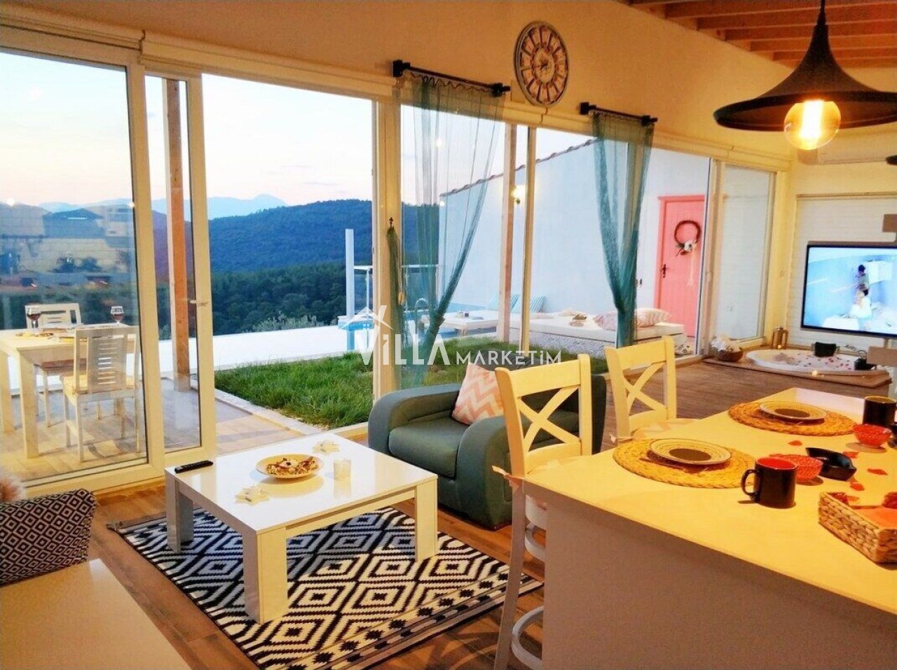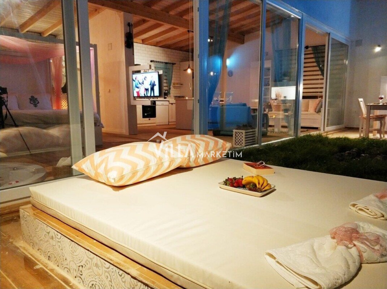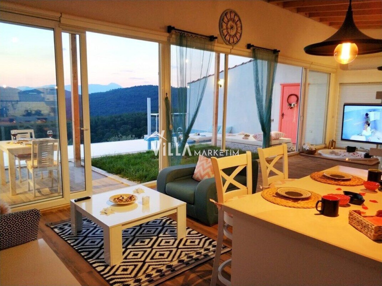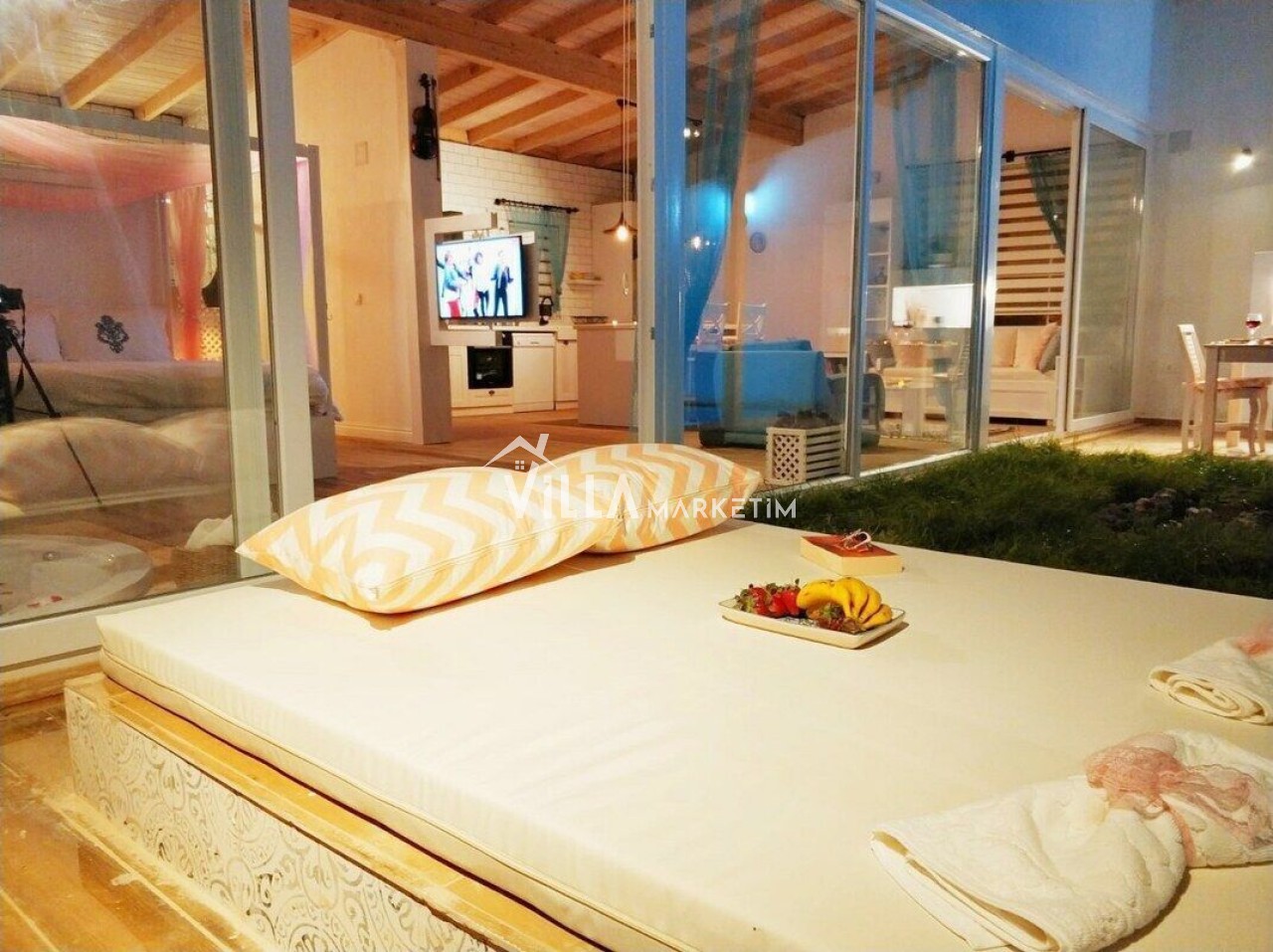 NOT : Sitemizde bulunan villa resimleri, görüntüyü ekrana sığdırmak maksadıyla 12-18 mm ’Geniş Açılı Lens’ ile çekilmektedir. Bu sebeple resimlerdeki objeler, gerçek boyutlarından daha büyük görünebilmektedir.