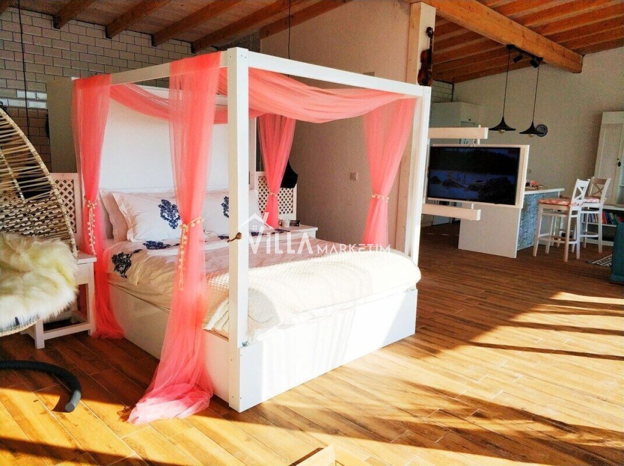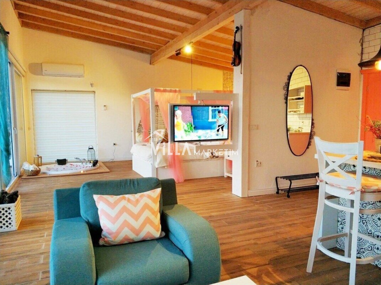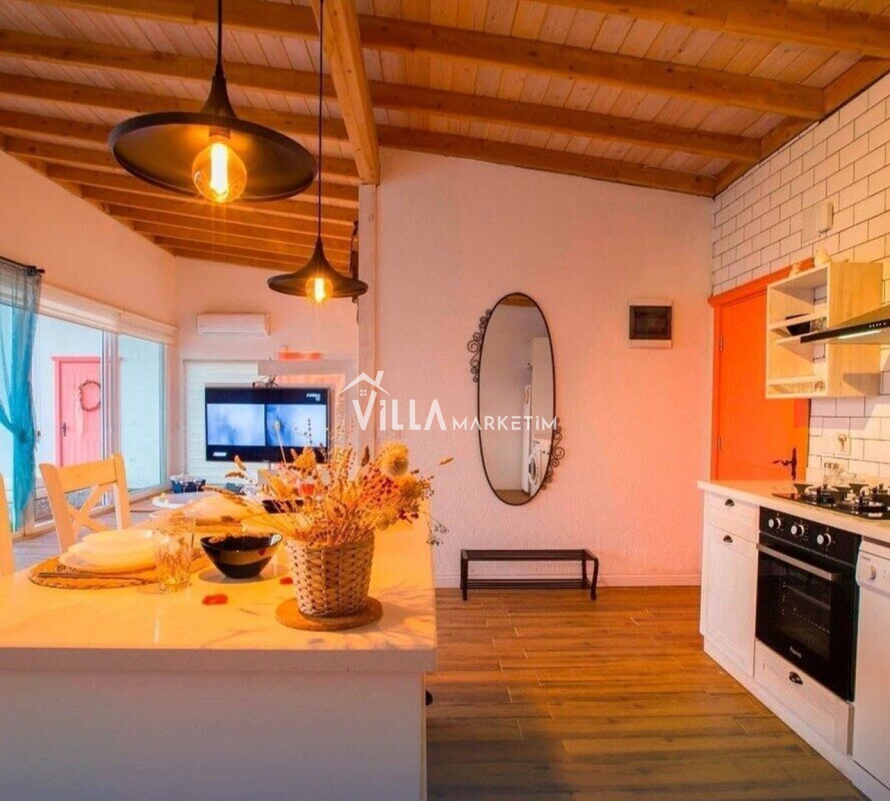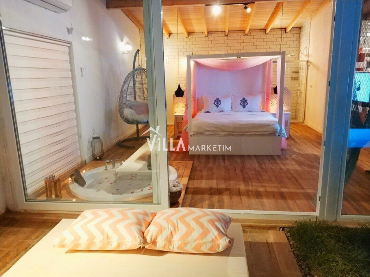 NOT : Sitemizde bulunan villa resimleri, görüntüyü ekrana sığdırmak maksadıyla 12-18 mm ’Geniş Açılı Lens’ ile çekilmektedir. Bu sebeple resimlerdeki objeler, gerçek boyutlarından daha büyük görünebilmektedir.