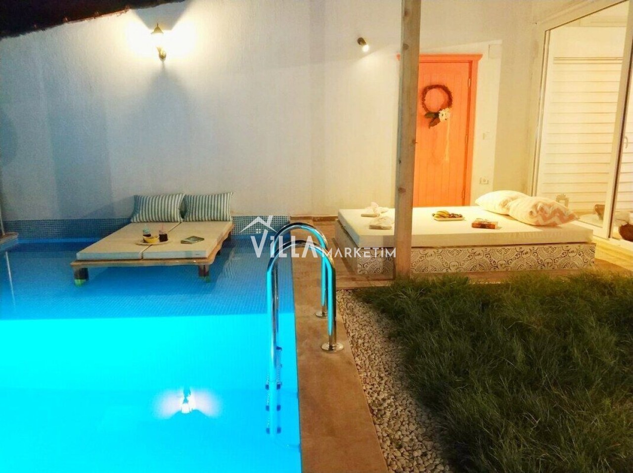 Ekstralar : Misafirlere temiz bir şekilde teslim edilmektedir. Salon ve yatak odaları klimalıdır. Villa içerisinde internet için kablosuz internet WIFI ve iç havuzunda jakuzi özelliği ve villa bahçesinde hamak vardır. Özel otopark mevcuttur.