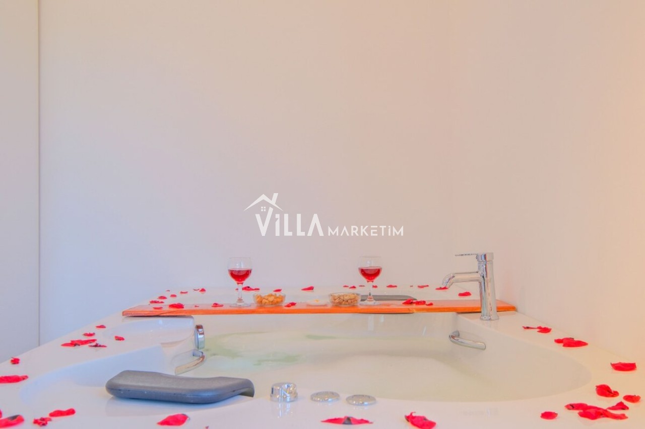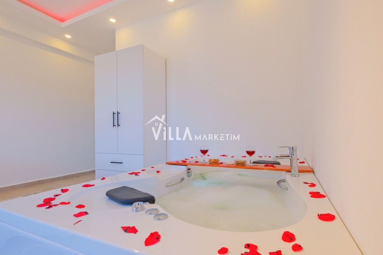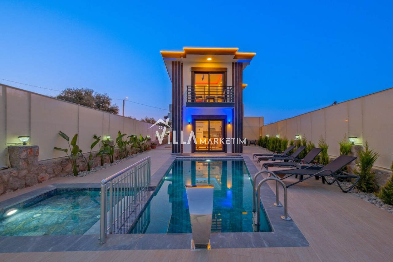 Modern mimarisi ve şık iç dekorasyonu ile dikkat çeken villada 3 yatak odası, geniş bir salon ve tam donanımlı mutfak bulunmaktadır. Tam korunaklı özel yüzme havuzu sayesinde dışarıdan görünmeyen, izole bir tatil imkanı sunar. Ayrıca jakuzili yapısı ile misafirlerine ekstra konfor ve rahatlık sağlar.
