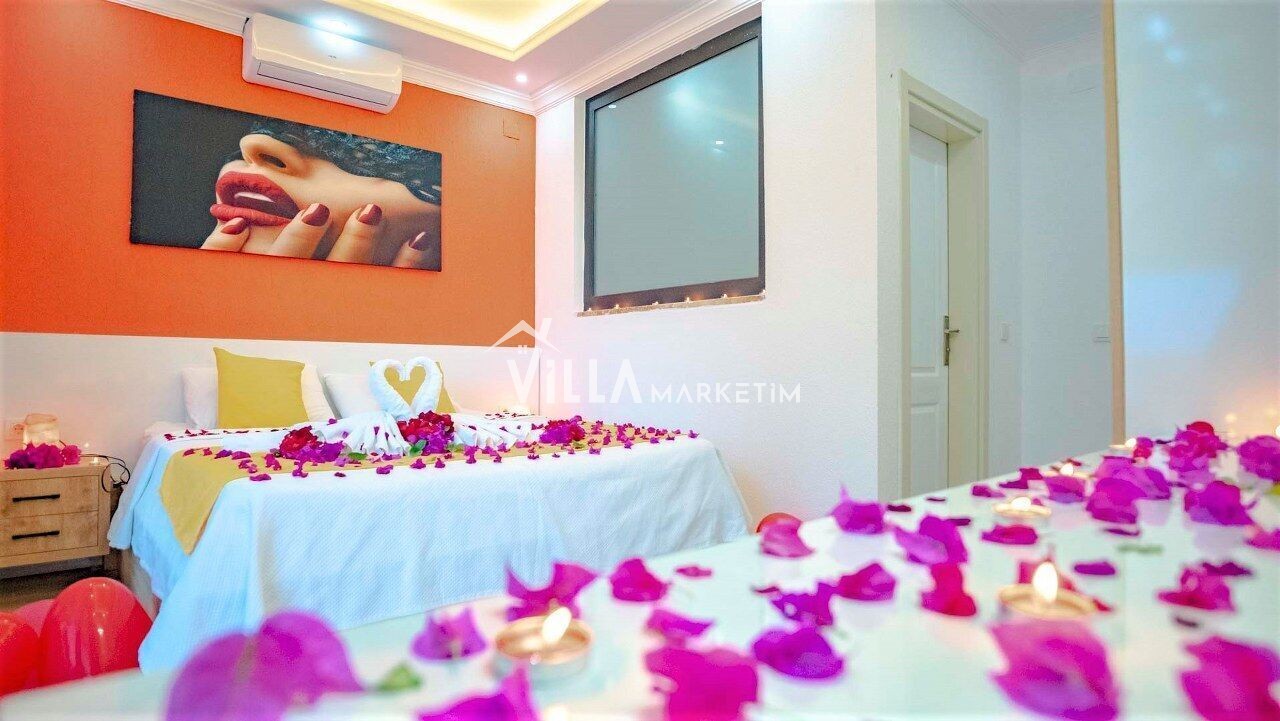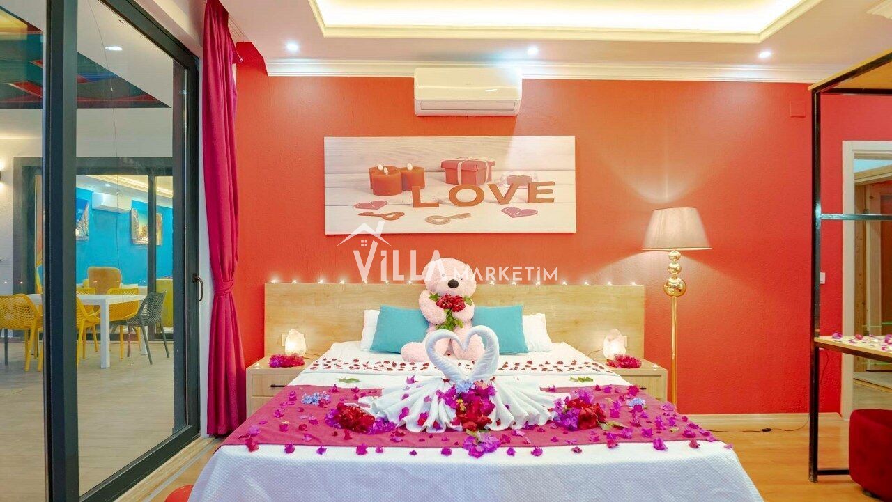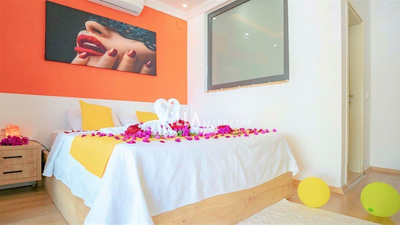 2.Yatak Odası : Süit oda, 1 adet çift kişilik yatak, klima, komodin, elbise dolabı, banyo, tuvalet,makyaj masası bulunmaktadır.
