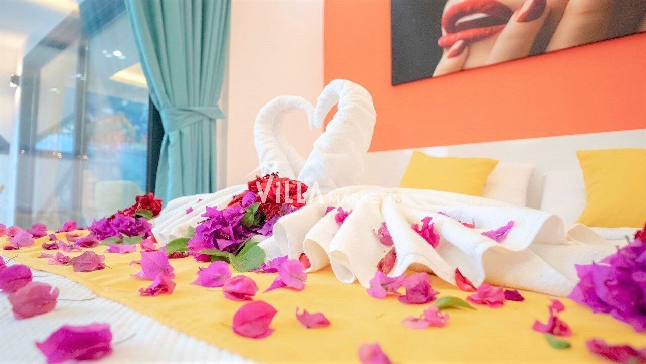 1.Yatak Odası : Süit oda, 1 adet çift kişilik yatak, klima, komodin, elbise dolabı,banyo, tuvalet,makyaj masası bulunmaktadır.