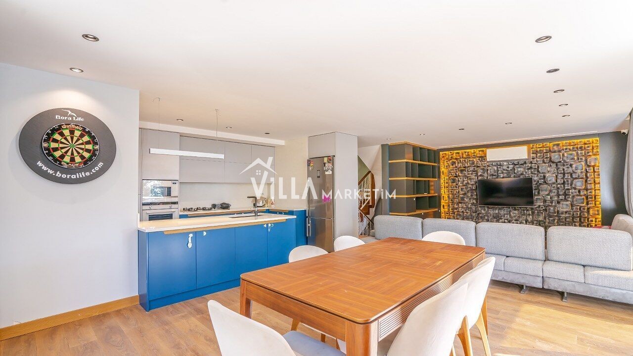 Mutfak : Modern Amerikan tarzı mutfağımızda buzdolabı, bulaşık makinesi, fırın, 4’lü ocak, mikrodalga fırın ve kettle bulunmaktadır. Ayrıca 6 kişilik yemek masası, yemek takımları, çatal bıçak setleri, tencere ve tava takımları ile bardaklar da mevcuttur.