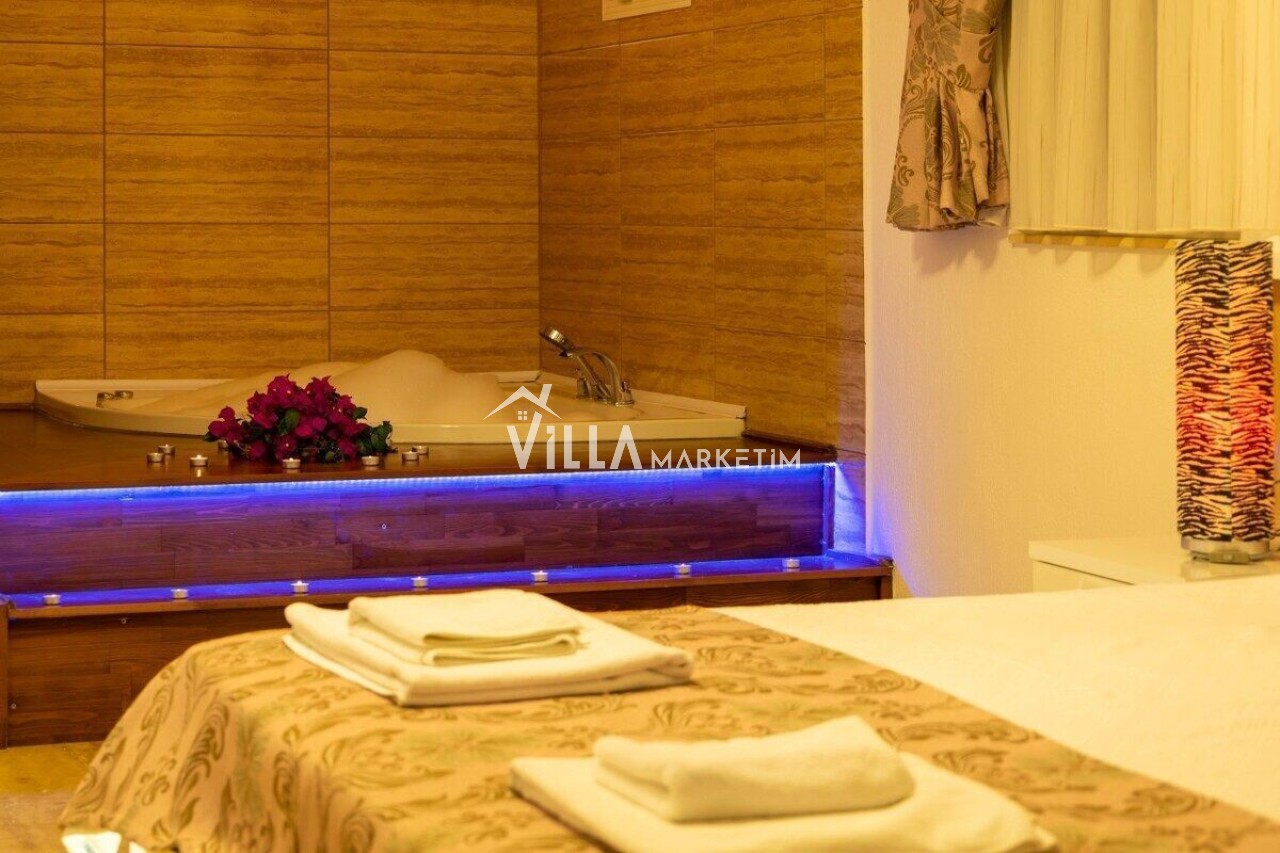 Havuz : Korunaklı özel yüzme havuzu bulunmaktadır. Havuz Ebatları ; 8 m x 3,5m, Derinlik : 1.50 metredir. Havuz ve bahçe bakımı günde 1 kez sabah veya akşam yapılmaktadır.
