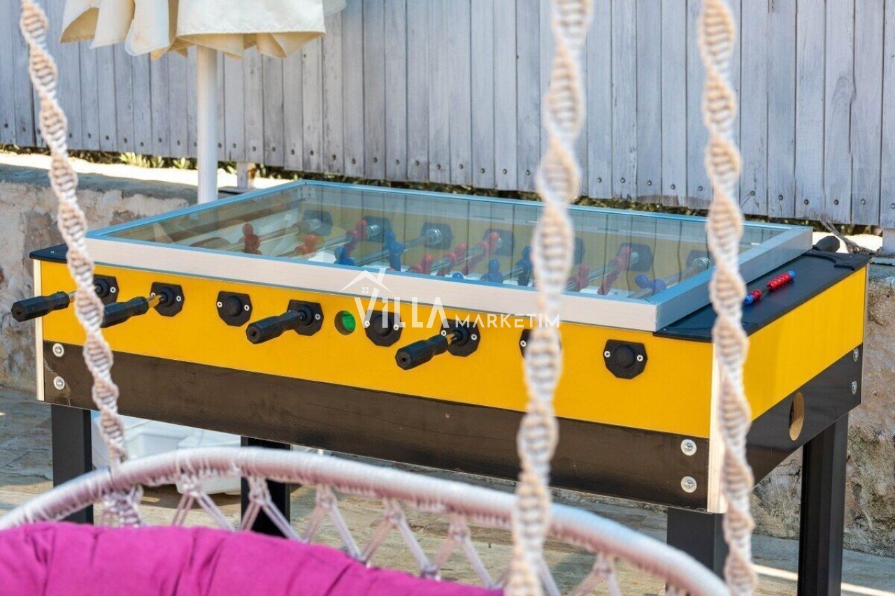 Bahçe : Villa Araf’ın özel bahçesinde 4 adet şezlong, 2 adet güneş şemsiyesi, bahçe oturma gurubu,bahçe yemek masası,sizlerin villa araf’ın bahçesinde keyifli dakikalar geçirmeniz için langırt,hamak,masa tenisi ve bohem tarz salıncak , BBQ bulunmaktadır.