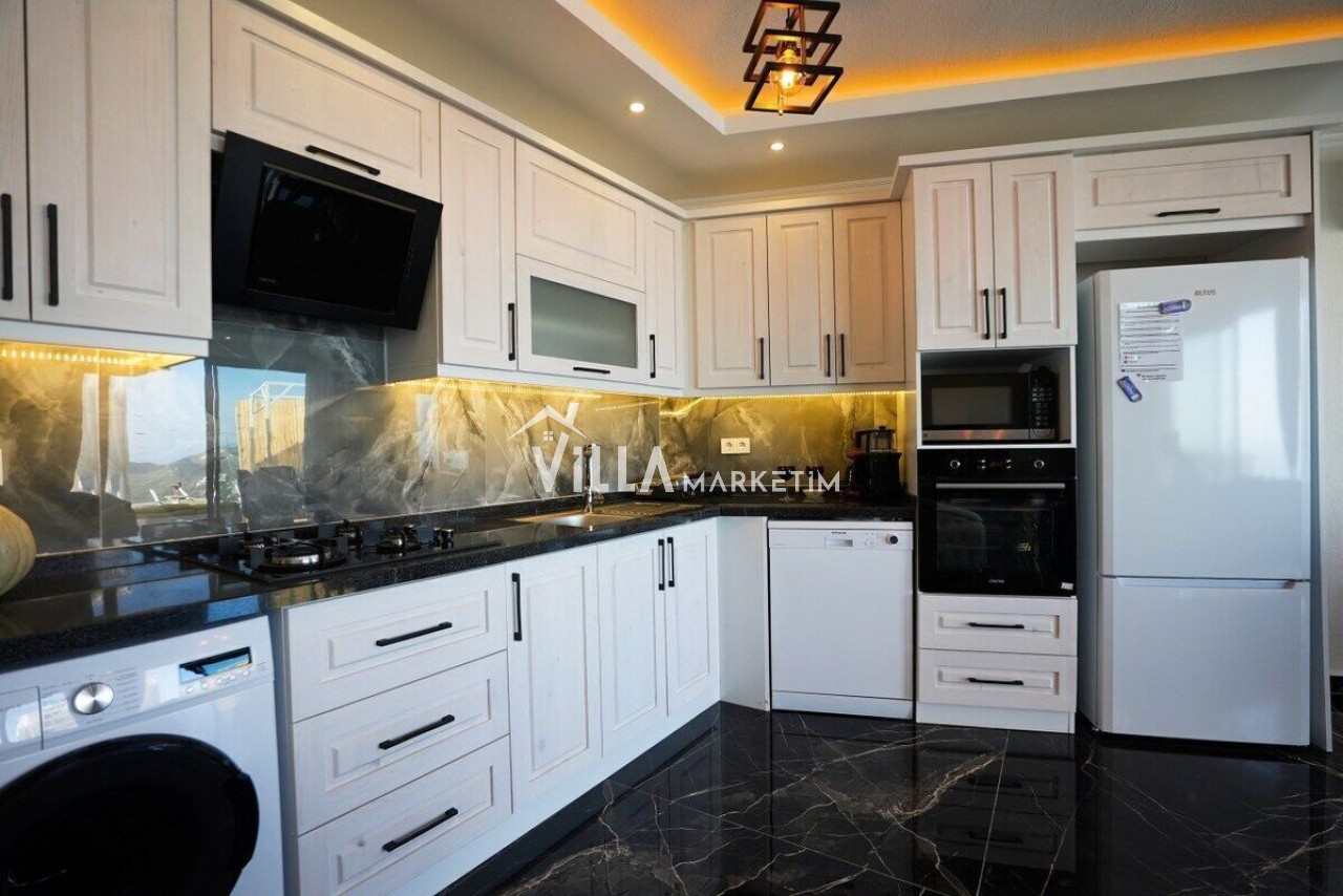 Mutfak: Modern Amerikan mutfak içerisinde buzdolabı, bulaşık makinesi, çamaşır makinesi, ankastre 4’lü ocak, kettle, fırın, çaycı, tost makinesi, tava ve tencere takımı, çatal bıçak takımı, su ve çay bardağı takımları yer almaktadır.
