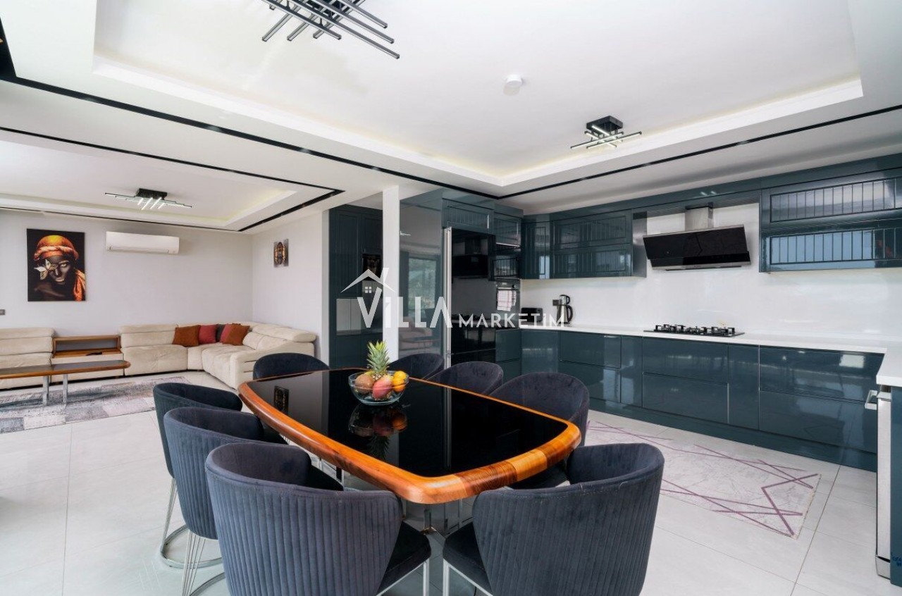 Mutfak : Amerikan mutfakta, buzdolabı, çamaşır makinesi, bulaşık makinesi, ankastre fırın, 4’lü ocak, mikrodalga fırın, elektrikli su ıstıcısı, tost makinesi, su sebili, 8 kişilik yemek masası, yemek takımı, çatal bıçak seti, tavalar, tencereler ve bardaklar bulunmaktadır.