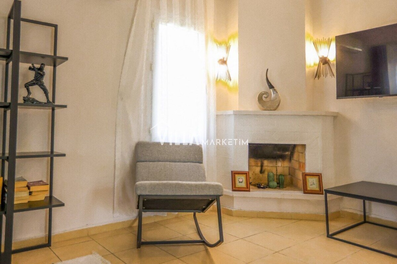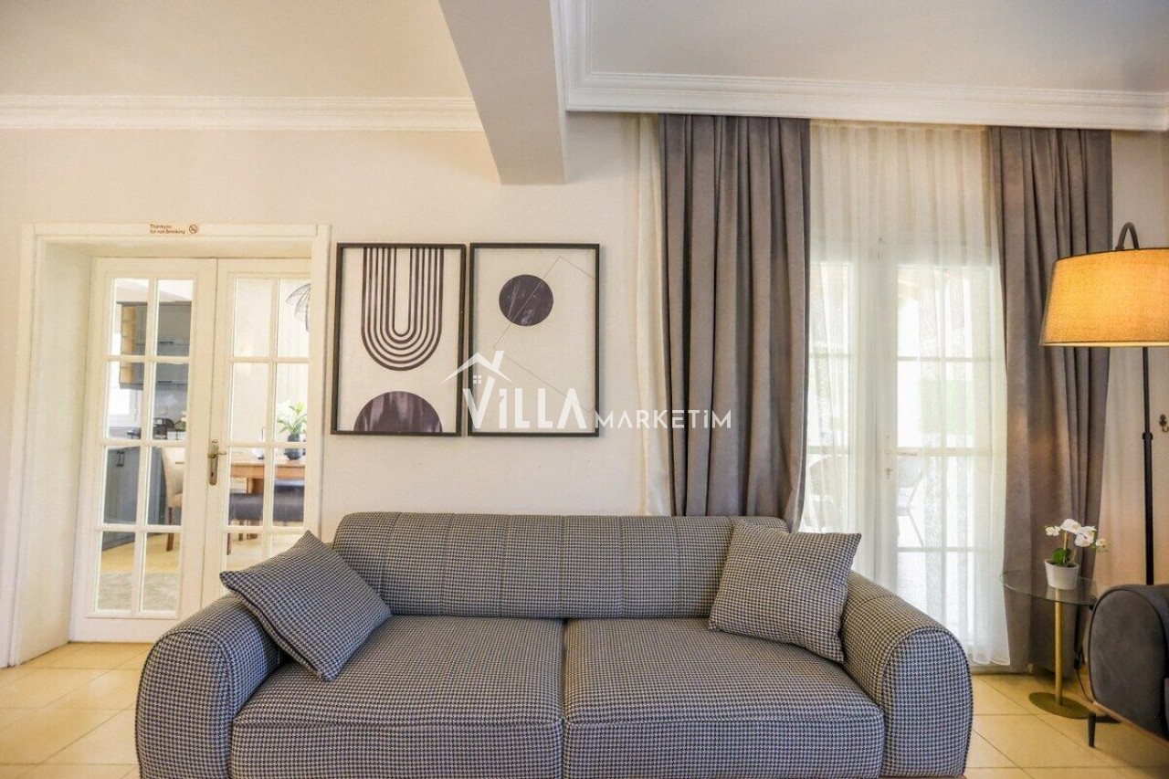 Salon : Salon içerisinde şık bir oturma grubu, şömine, TV, klima ve havuz terasına çıkış bulunur.