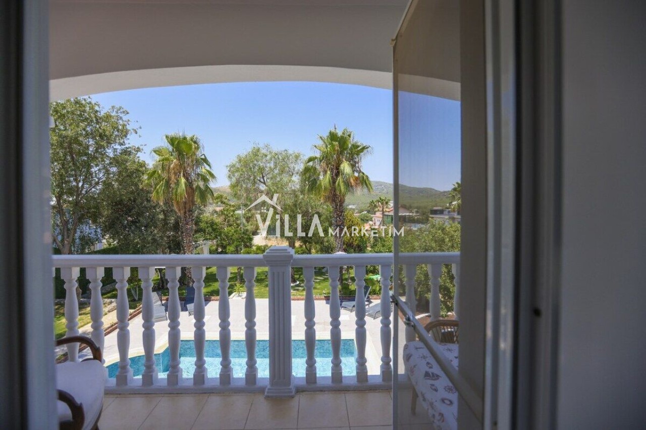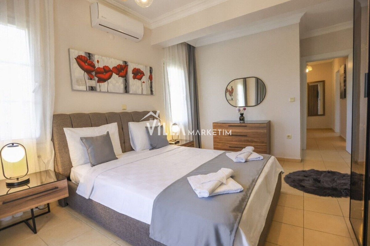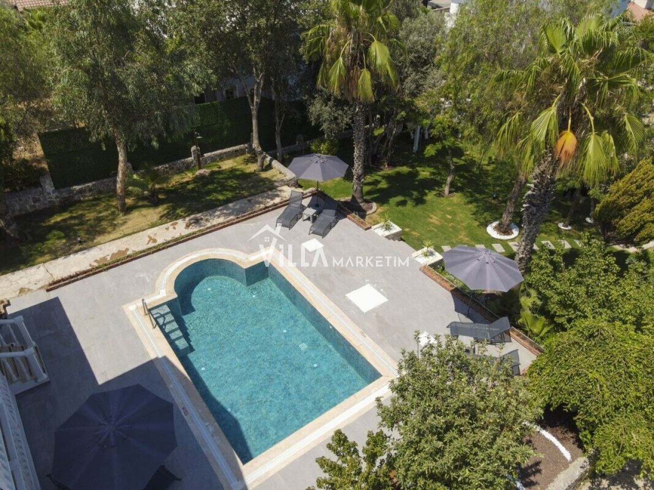 Ekstralar : Villa misafirlere temiz bir şekilde teslim edilmektedir. Salon ve yatak odaları klimalıdır. Bahçe & havuz bakım ve temizliği günde 1 defa yapılmaktadır.