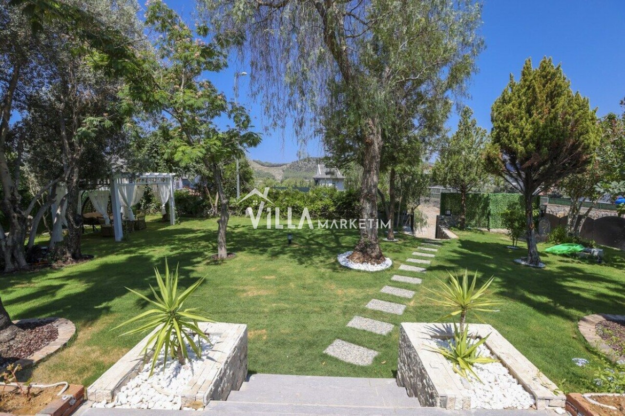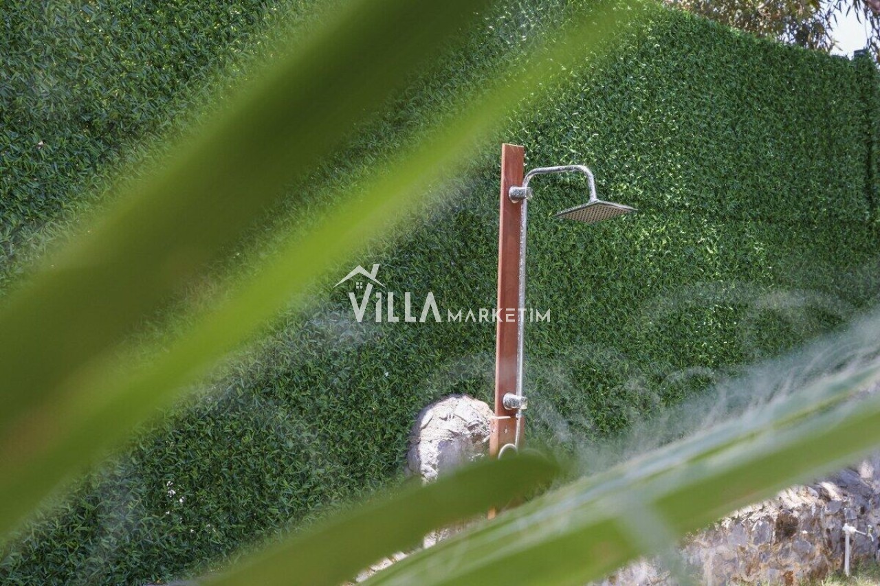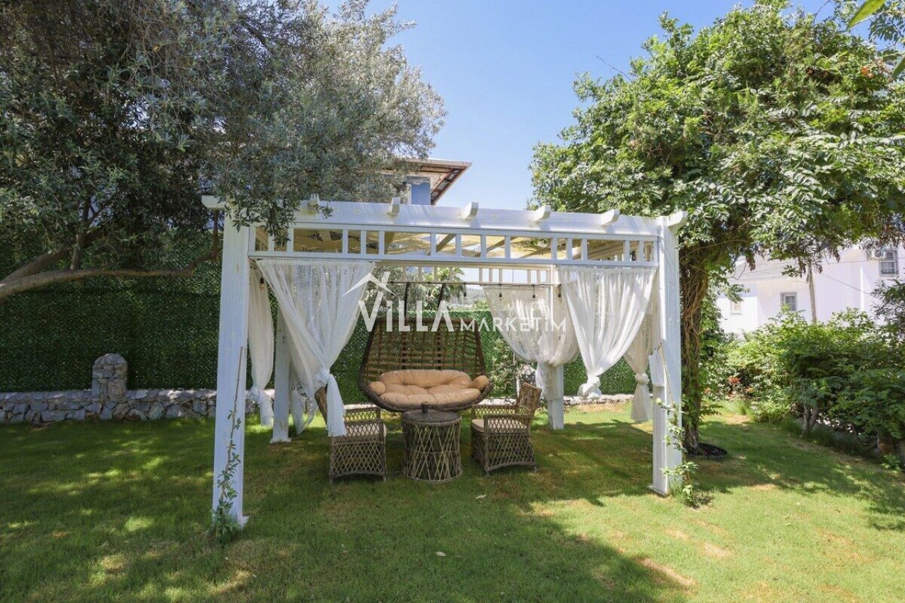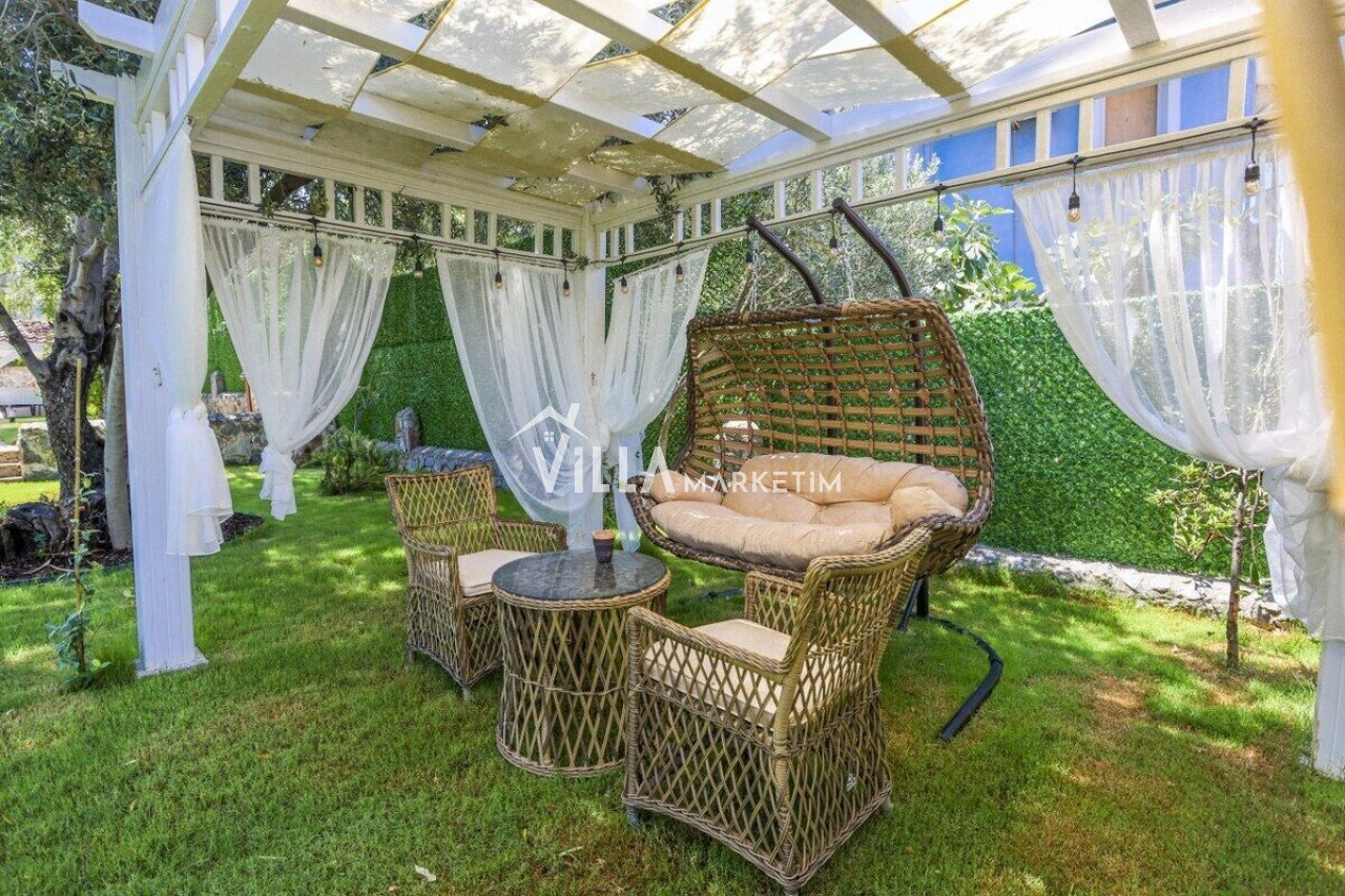 Bahçe : Bahçe içerisinde özel yüzme havuzu, şezlonglar, güneş şemsiyesi, çardak, bahçe yemek masası ve bahçe oturma grubu, duş ve barbekü bulunmaktadır.