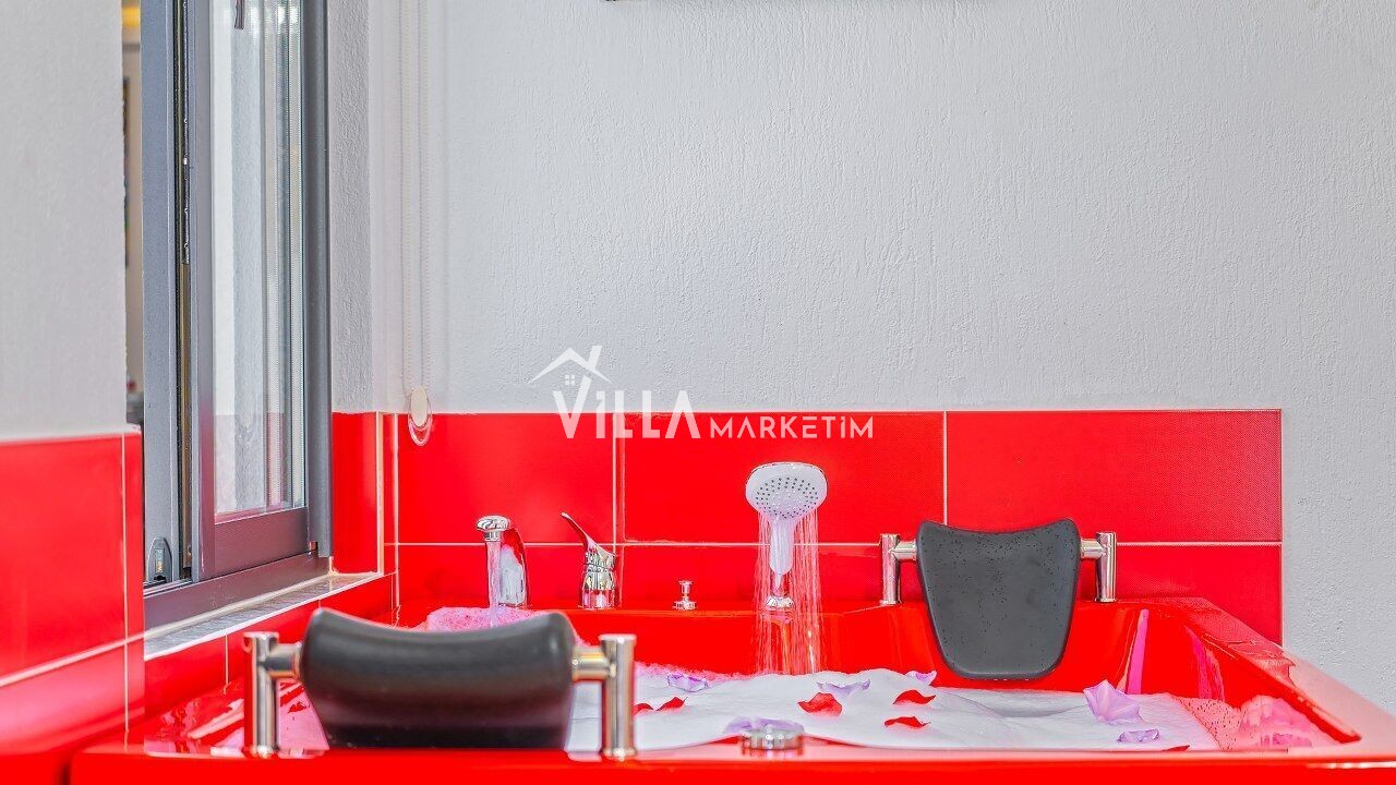 NOT : Sitemizde bulunan villa resimleri, görüntüyü ekrana sığdırmak maksadıyla 12-18 mm ’Geniş Açılı Lens’ ile çekilmektedir. Bu sebeple resimlerdeki objeler gerçek boyutlarından daha büyük görünebilmektedir.