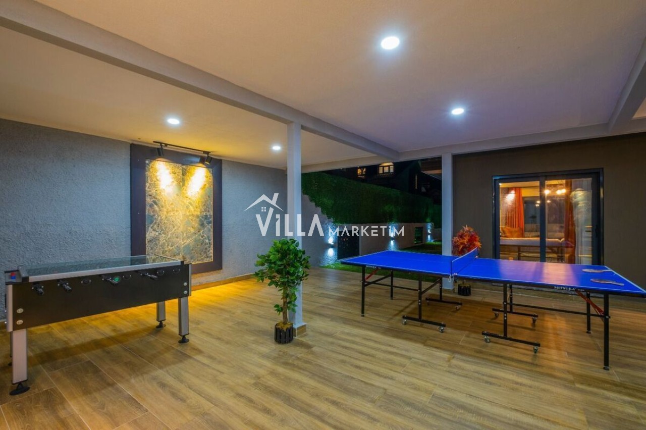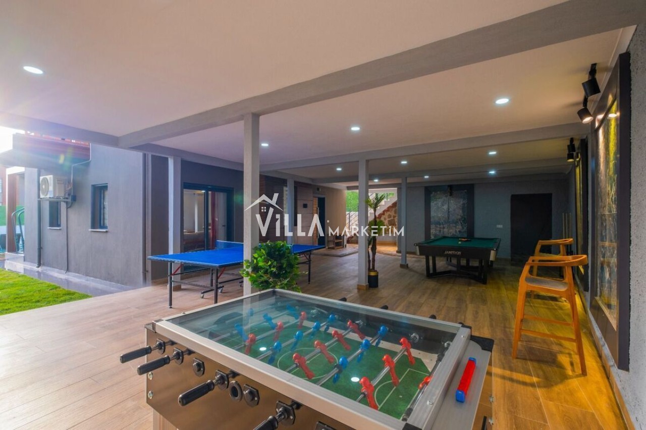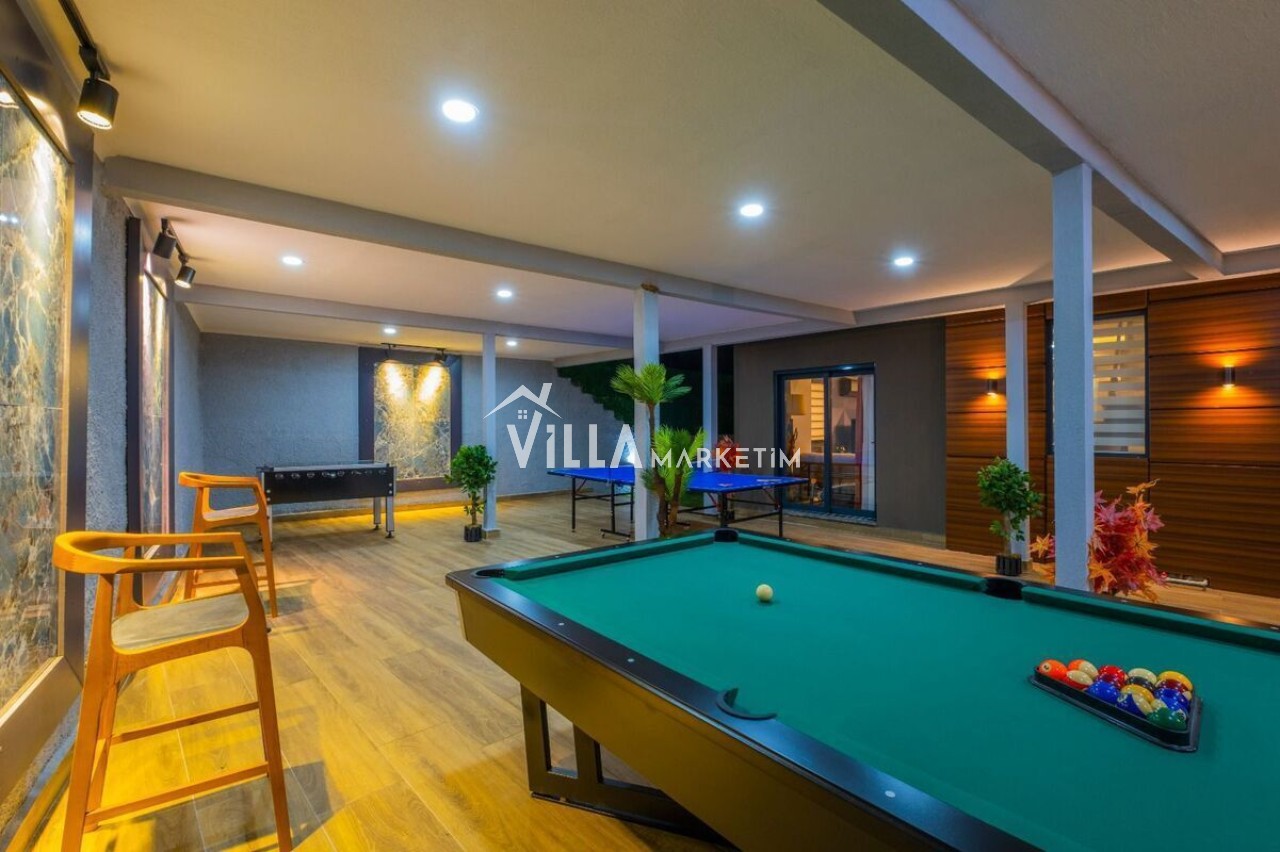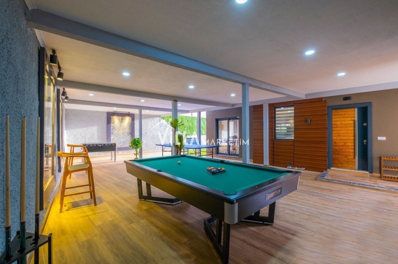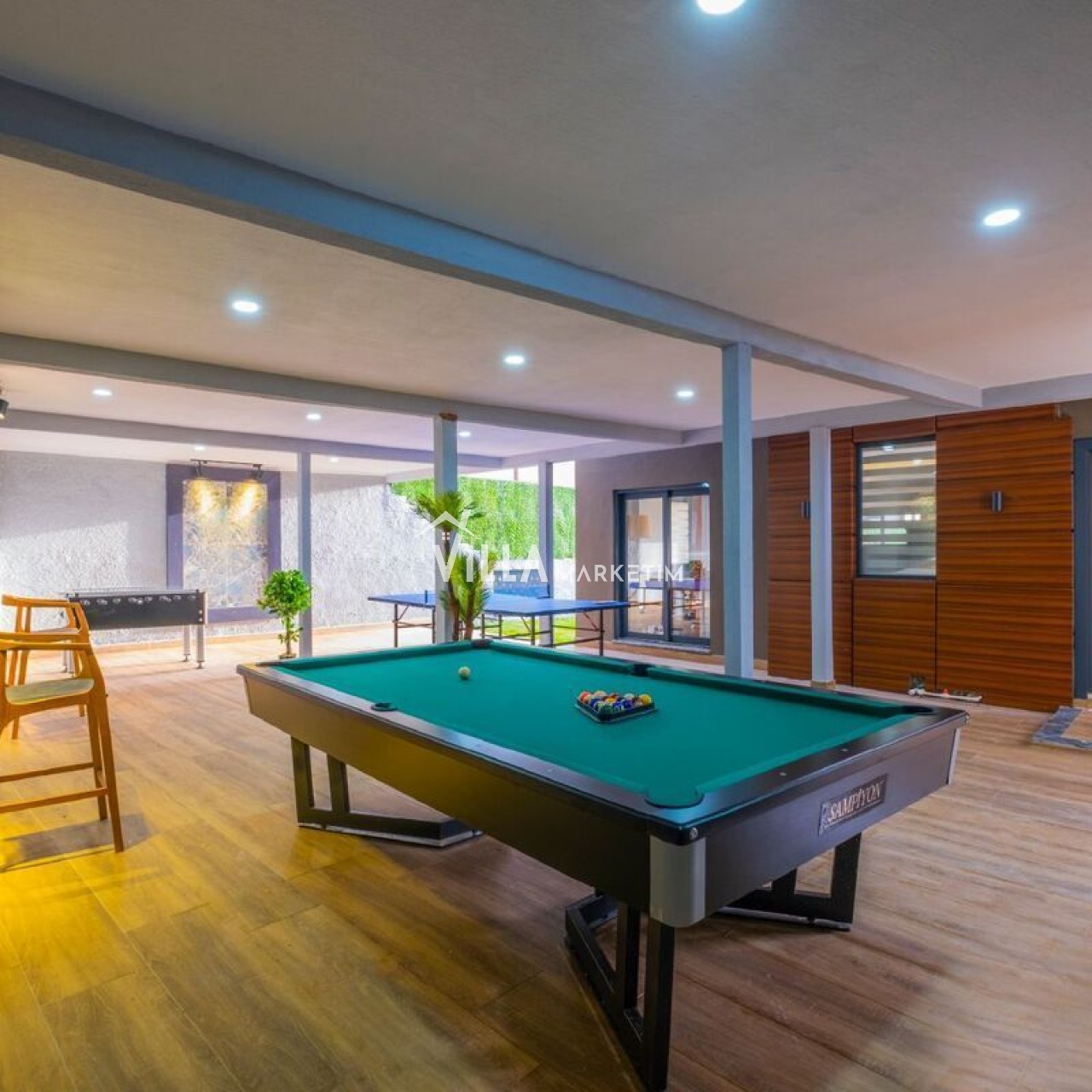 Bahçe : Özel yüzme havuzu, şezlong, şezlong sehpası, damla salıncak, açık duş, bahçe oturma grubu, yemek masası ve sandalyeleri, mangal, bilardo masası, langırt, masa tenisi bulunmaktadır.