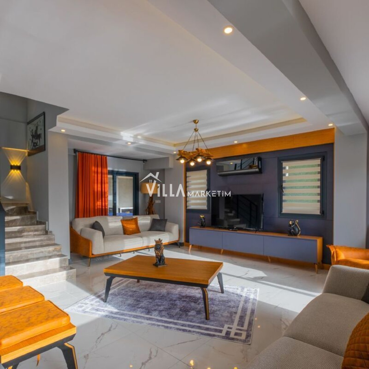 Salon : Modern oturma grubu, TV, TV ünitesi, orta sehpa, klima, havuz terasına çıkış bulunmaktadır.