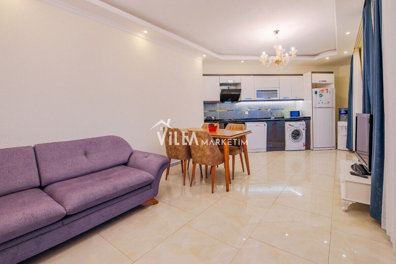 Salon : Modern ve şık oturma grubu, TV, uydu alıcısı, modem ve 6 kişilik yemek masası bulunmaktadır. Ortak WC mevcuttur.