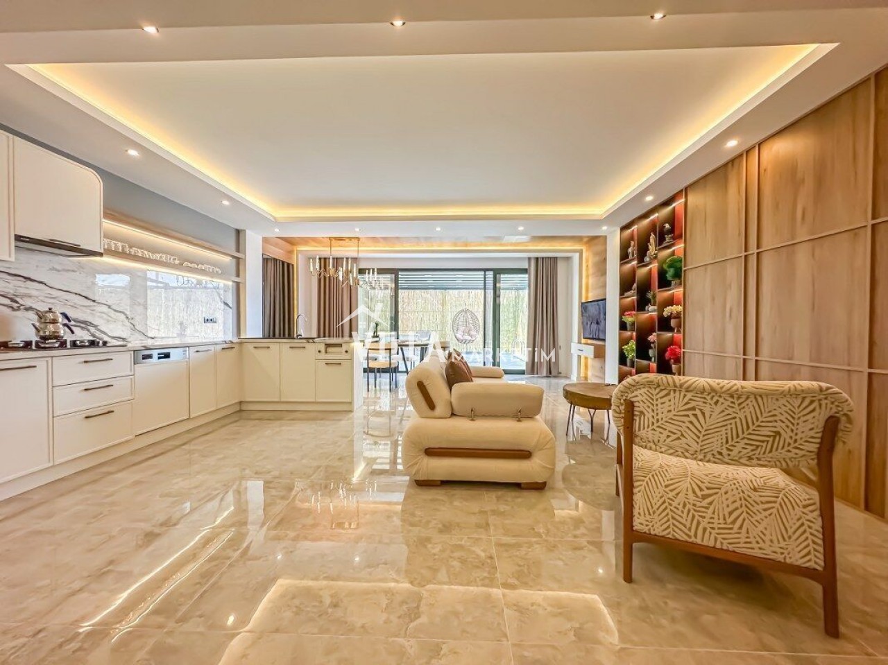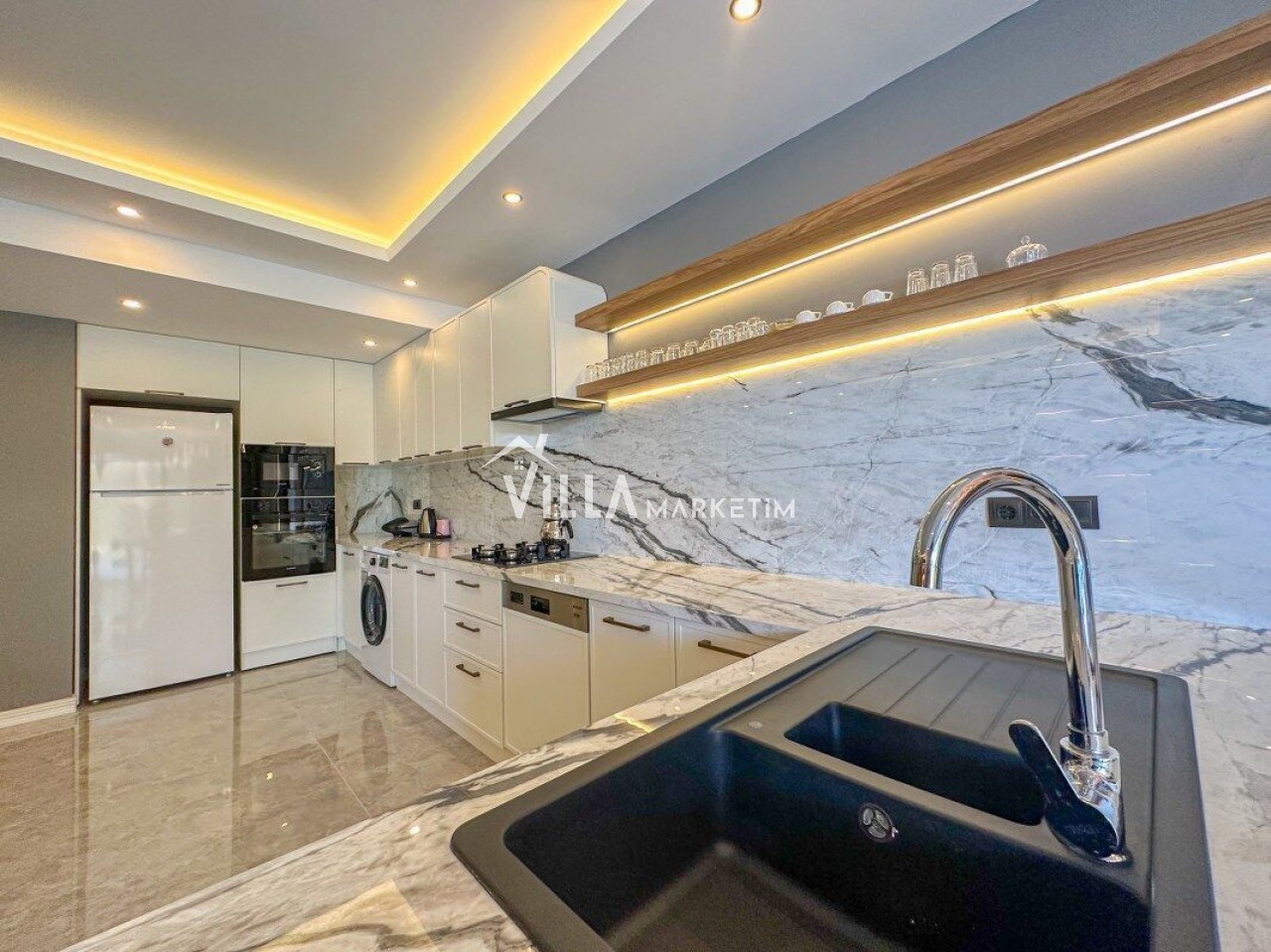 Mutfak: Amerikan Mutfak, buzdolabı, bulaşık makinesi, kahve makinesi, çamaşır makinesi, fırın, 4’lü ocak, mutfak araç gereçleri (tabak&bardaklar, tencere&tavalar vb.), kettle(çaycı) ve 6 kişilik yemek takımı bulunmaktadır.