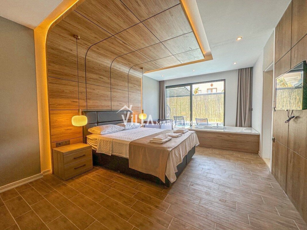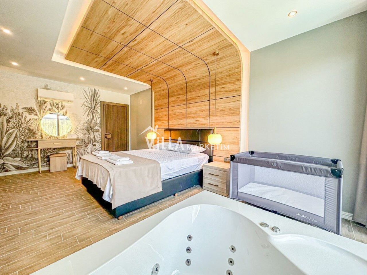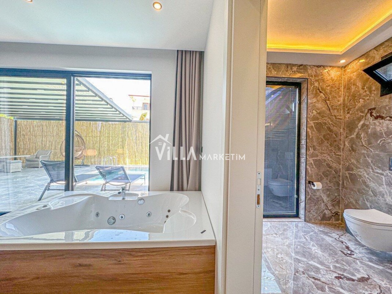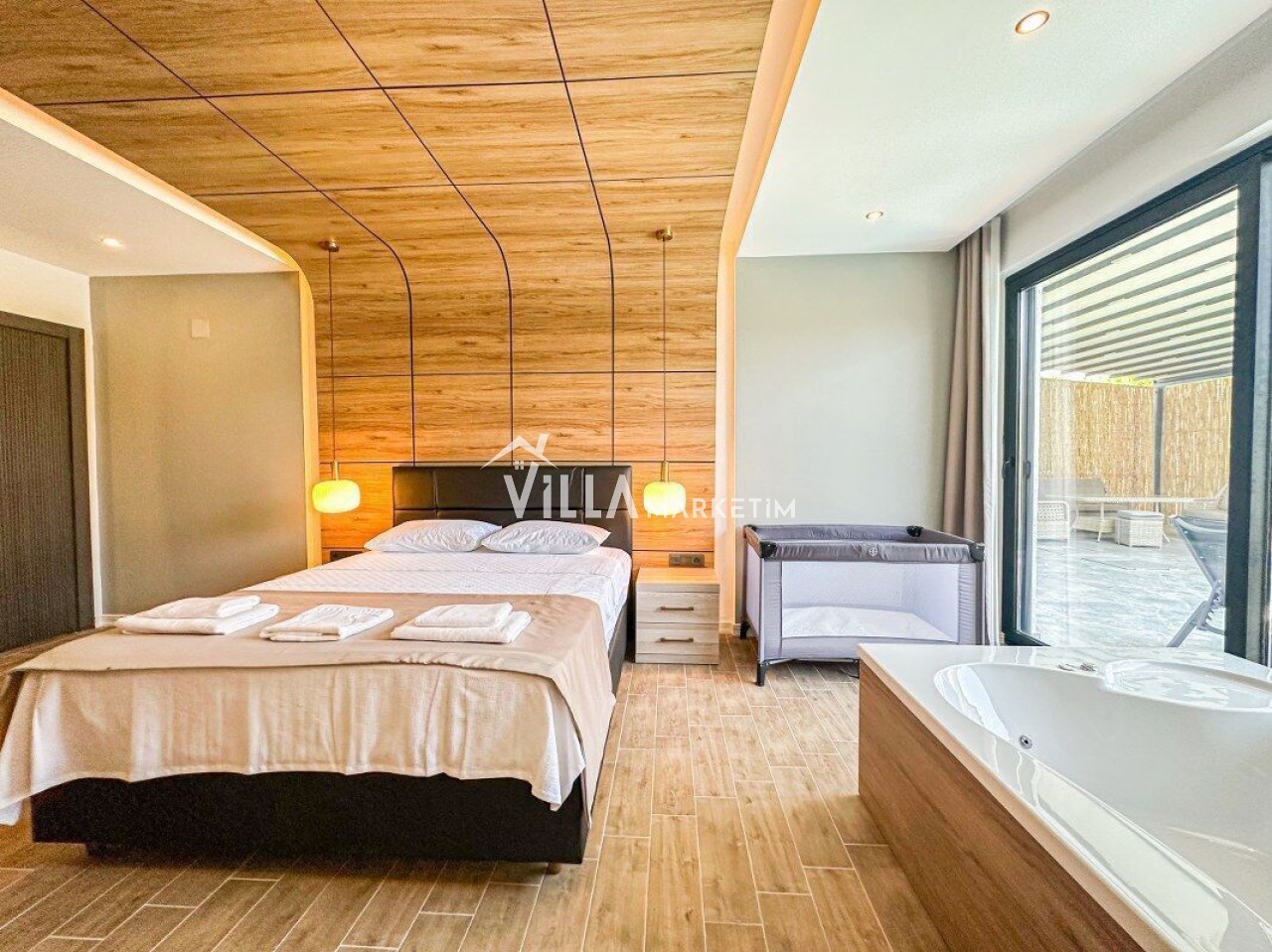► Öne Çıkan Özellik; Havuzu oldukça korunaklı, Yatak odasında televizyon, Yatak odasında jakuzi, Yatak odalarında ebeveyn banyosu, Balayı için ideal, Bahçede salıncak, Geniş aile ve arkadaş konaklamaları için ideal, Otomatik havuz üstü açılabilir-kapanabilir pergole,