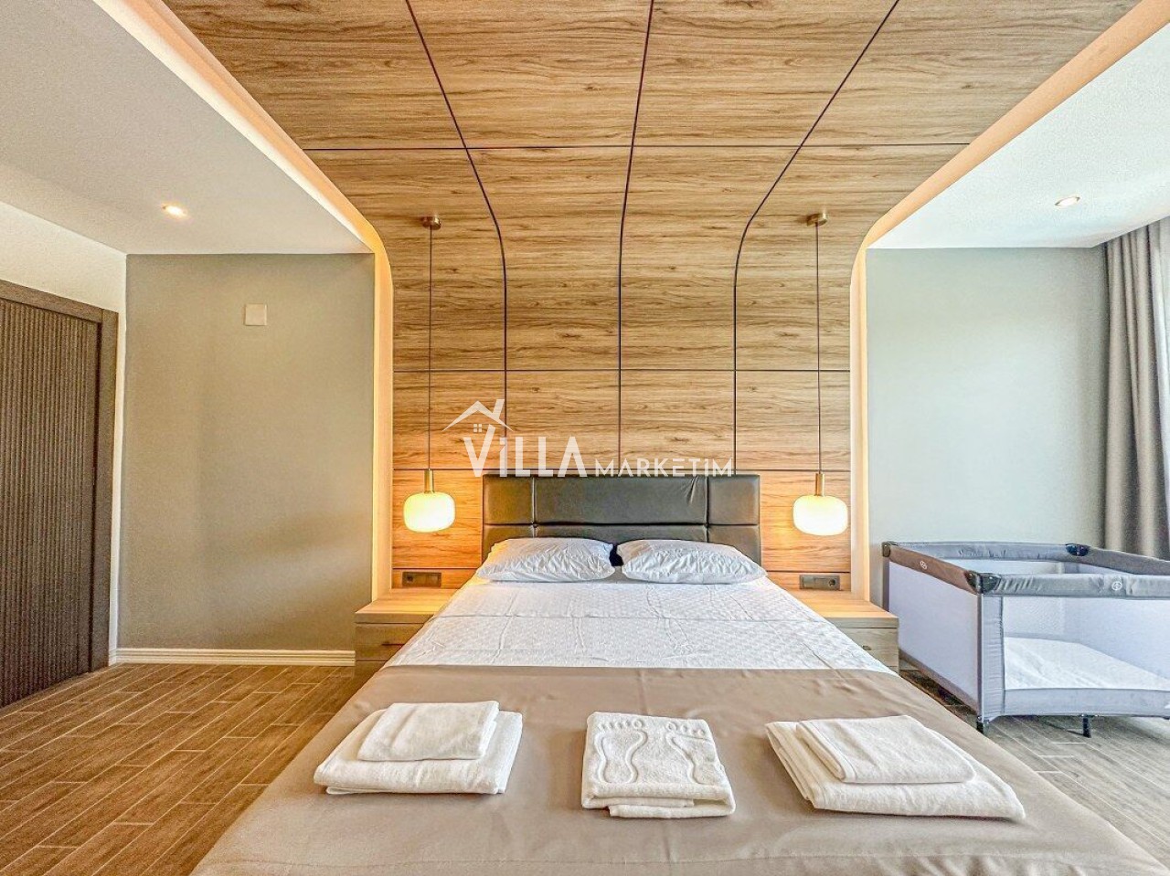 1. Yatak Odası: 1 adet çift kişilik yatak, Bebek Yatağı, Jakuzi, Tmakyaj masası, elbise dolabı, komidin, klima, BANYO-WC