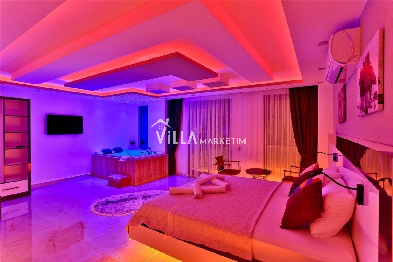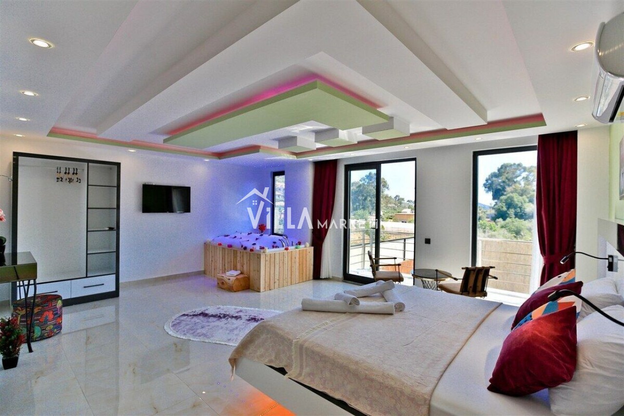 2. Yatak Odası: Suit yatak odası olup, 2 adet tek kişilik yatak, jakuzi, makyaj masası, TV, elbise dolabı, klima, banyo/tuvalet ve balkon bulunmaktadır.