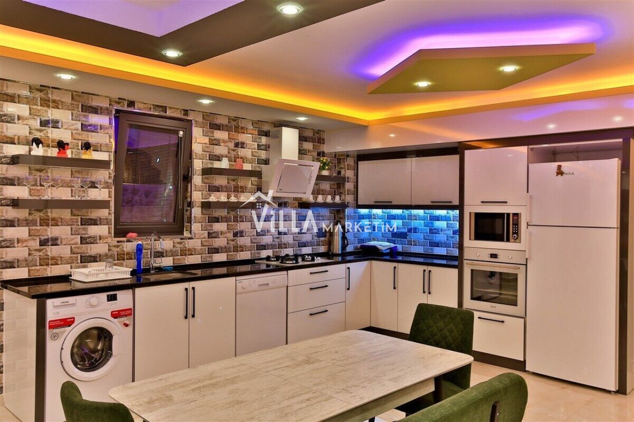 Mutfak : Amerikan mutfak içerisinde buzdolabı, bulaşık makinası, 4’lü ocak, davlumbaz, ankastre fırın, mikrodalga fırın, çaycı, yemek takımı, tava ve tencereler, çatal, bıçak takımı bulunmaktadır.