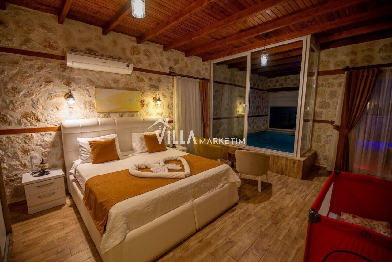 Villa Hayal Evi, Kalkan İslamlar’da doğa içerisinde konuma sahiptir. Muhteşem bir doğa manzarası ve deniz manzarasının sizi beklediği, taş mimariye sahip villamızın müstakil yüzme havuzu ve sığ havuzu bulunmaktadır. Kaliteli ve zevkli bir donanıma sahip olan villa tek yatak odalıdır. 3,8 m. x 2,5 m. genişliğinde 1,2 m derinliğinde ısıtmalı iç havuza sahip olan bu muhteşem balayı villamız Kalkan’ın en özel villalarındandır. Yüksek memnuniyet oranından dolayı 2017 yılının son aylarında portföyümüze dahil olmuştur.