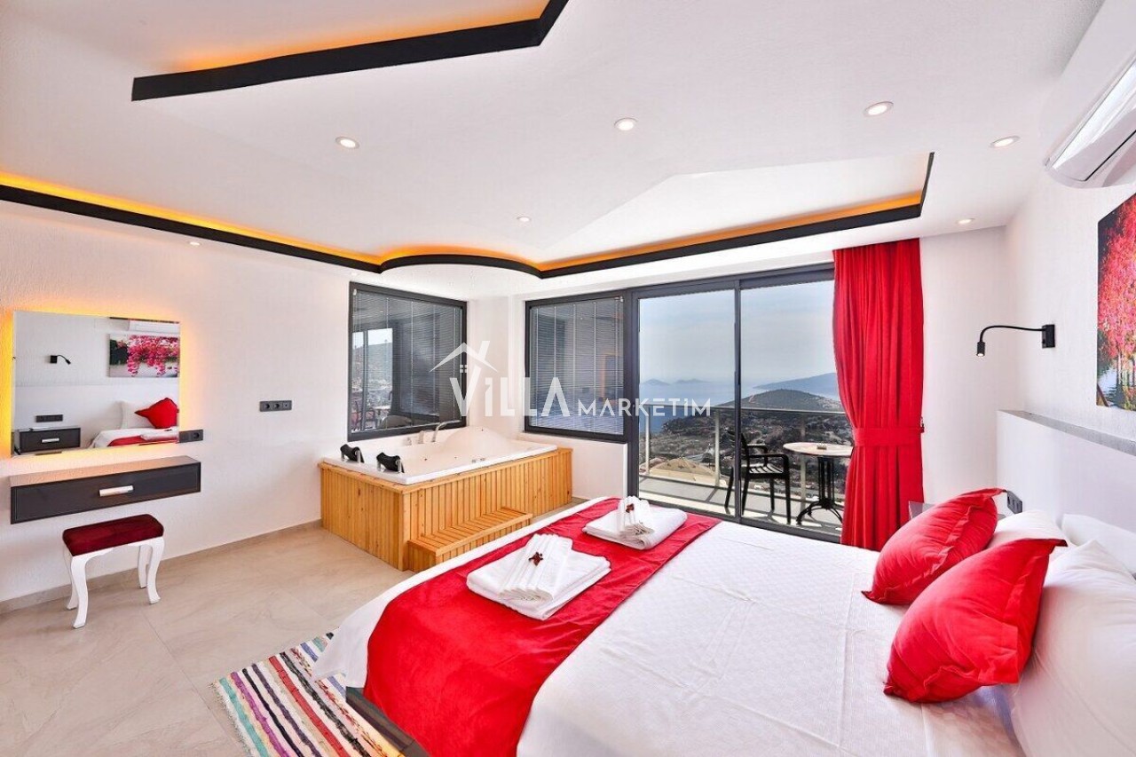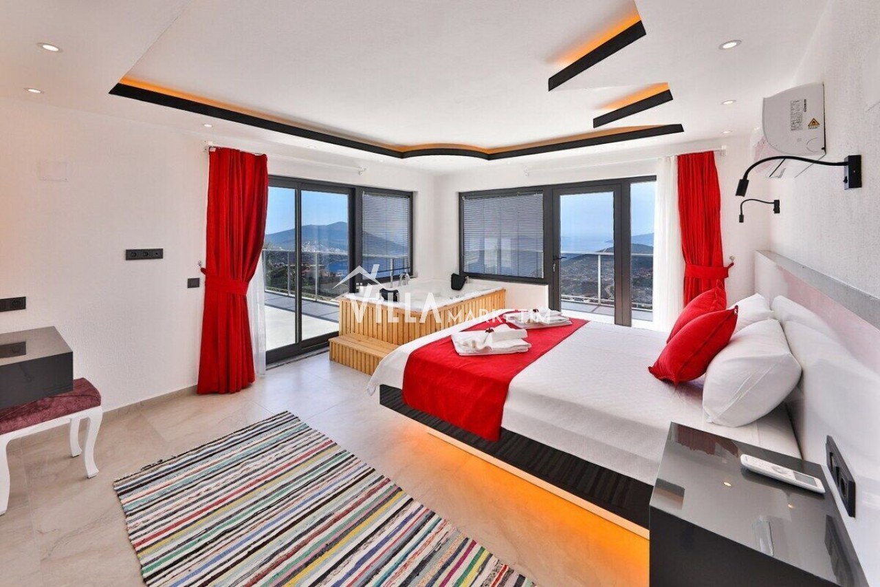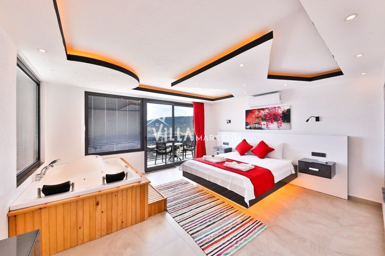 Villanın 5 geniş ve konforlu yatak odası ve 5 Banyosu bulunmaktadır. Muhteşem deniz manzaranın keyfini çıkarabileceğiniz bir jakuzi yer almaktadır. Burada güneşin batışını izlerken hem rahatlayabilir hem de eşsiz bir romantik atmosferin tadını çıkarabilirsiniz.