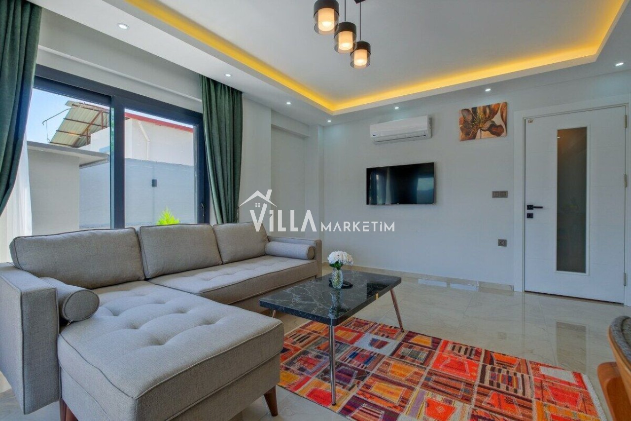 Salon : Salonda konforlu oturma grubu, orta sehpa, LCD TV, uydu alıcısı, yer almaktadır. Havuz kenarına çıkış bulunmaktadır.