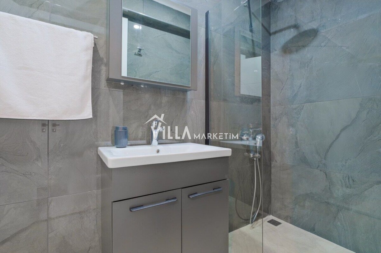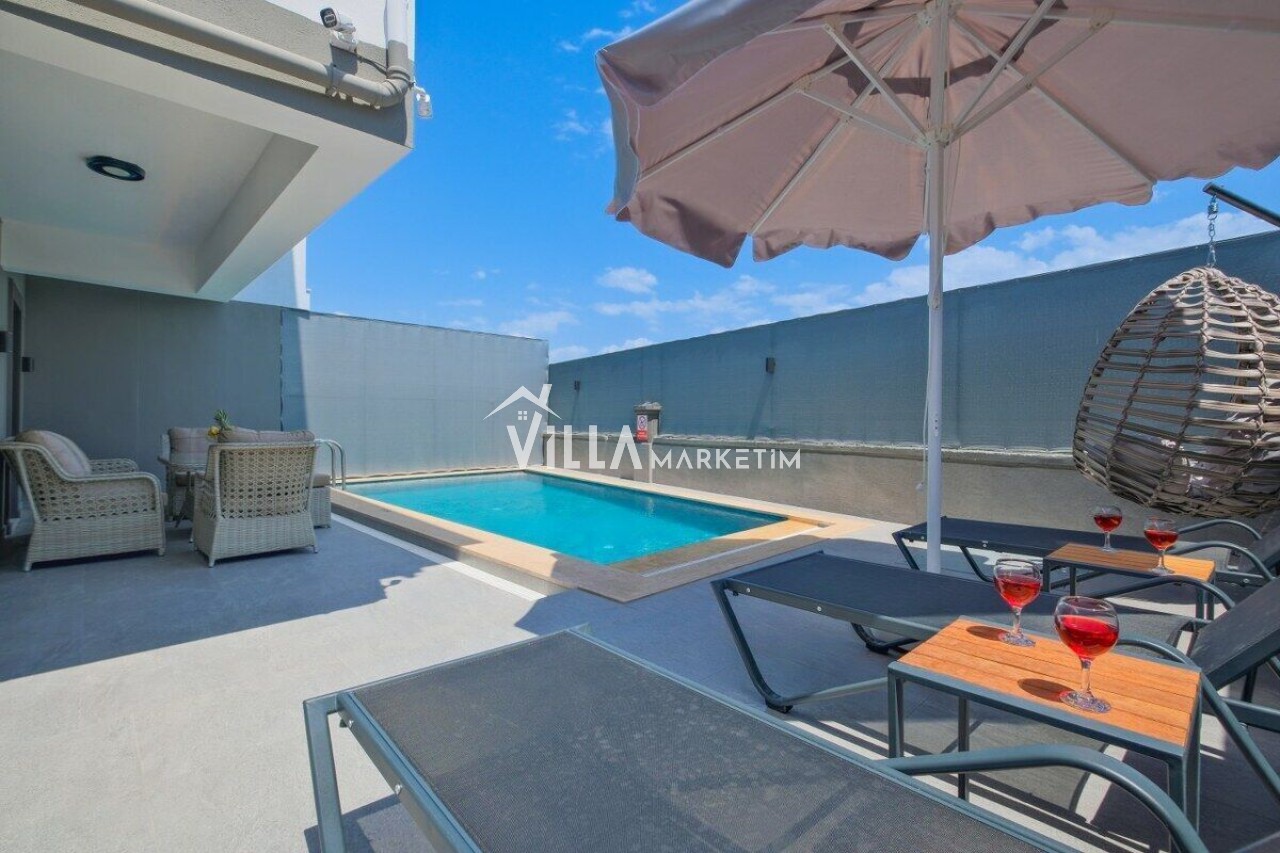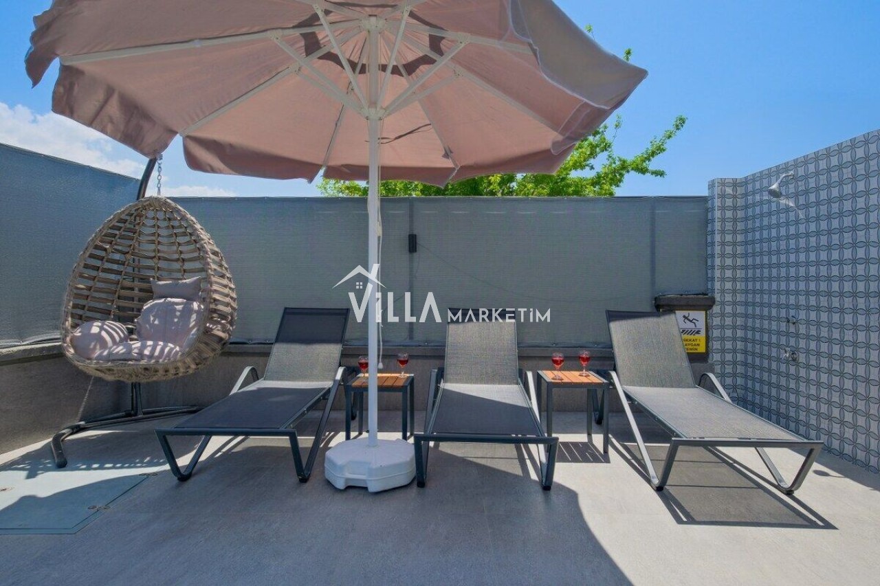 Bahçe : Özel bahçede güneşlenme terası ve korunaklı havuz yer almaktadır. Bahçede oturma grubu, güneş şemsiyesi, 4 ad. şezlong ve taş barbekü bulunmaktadır.