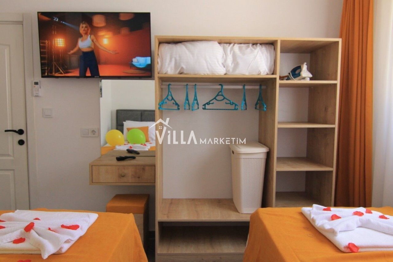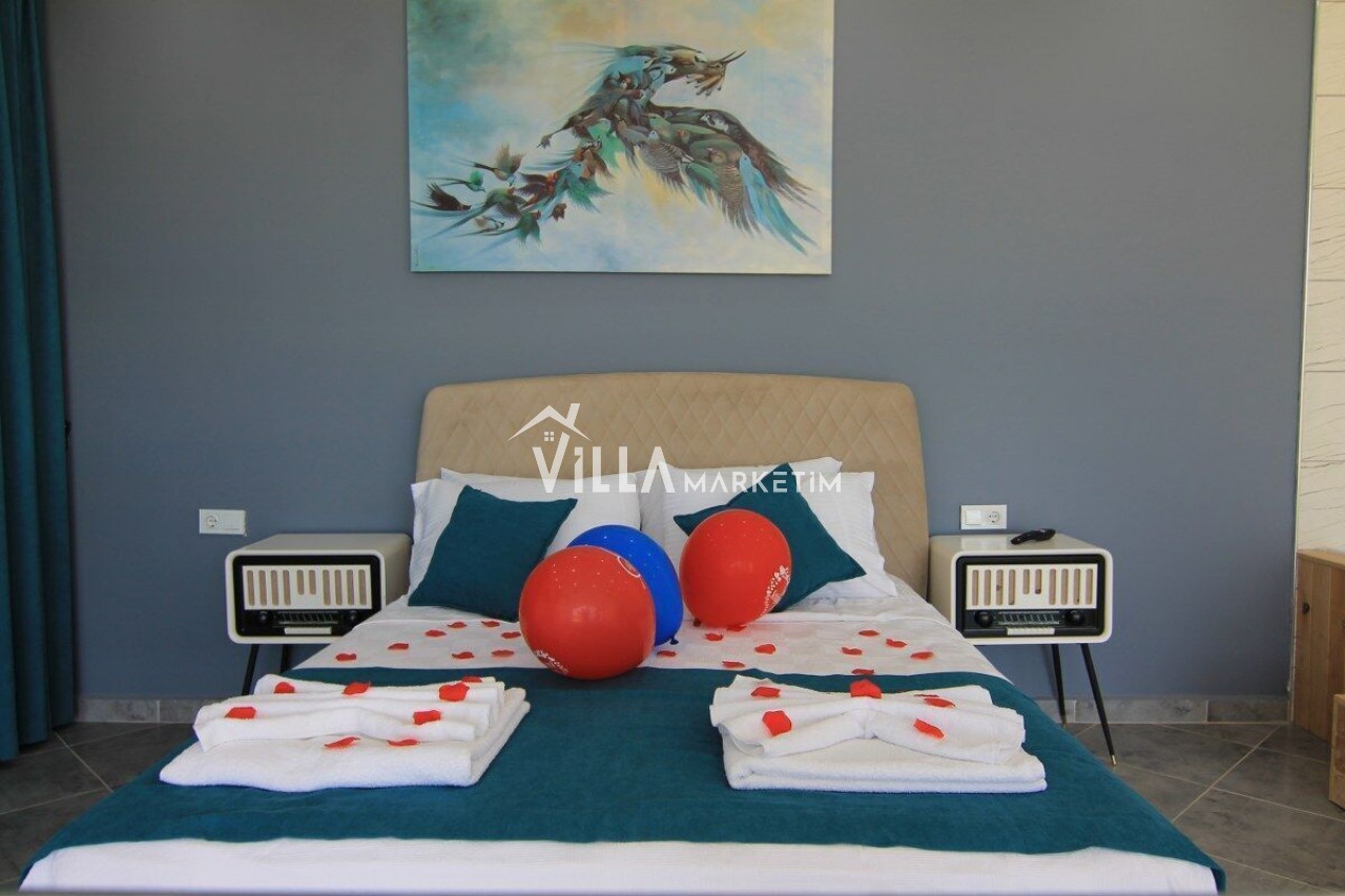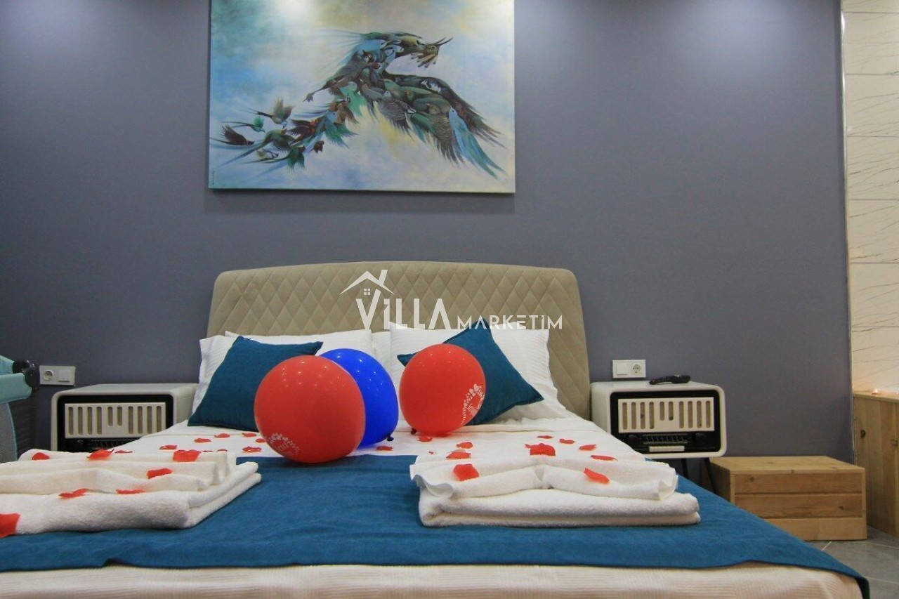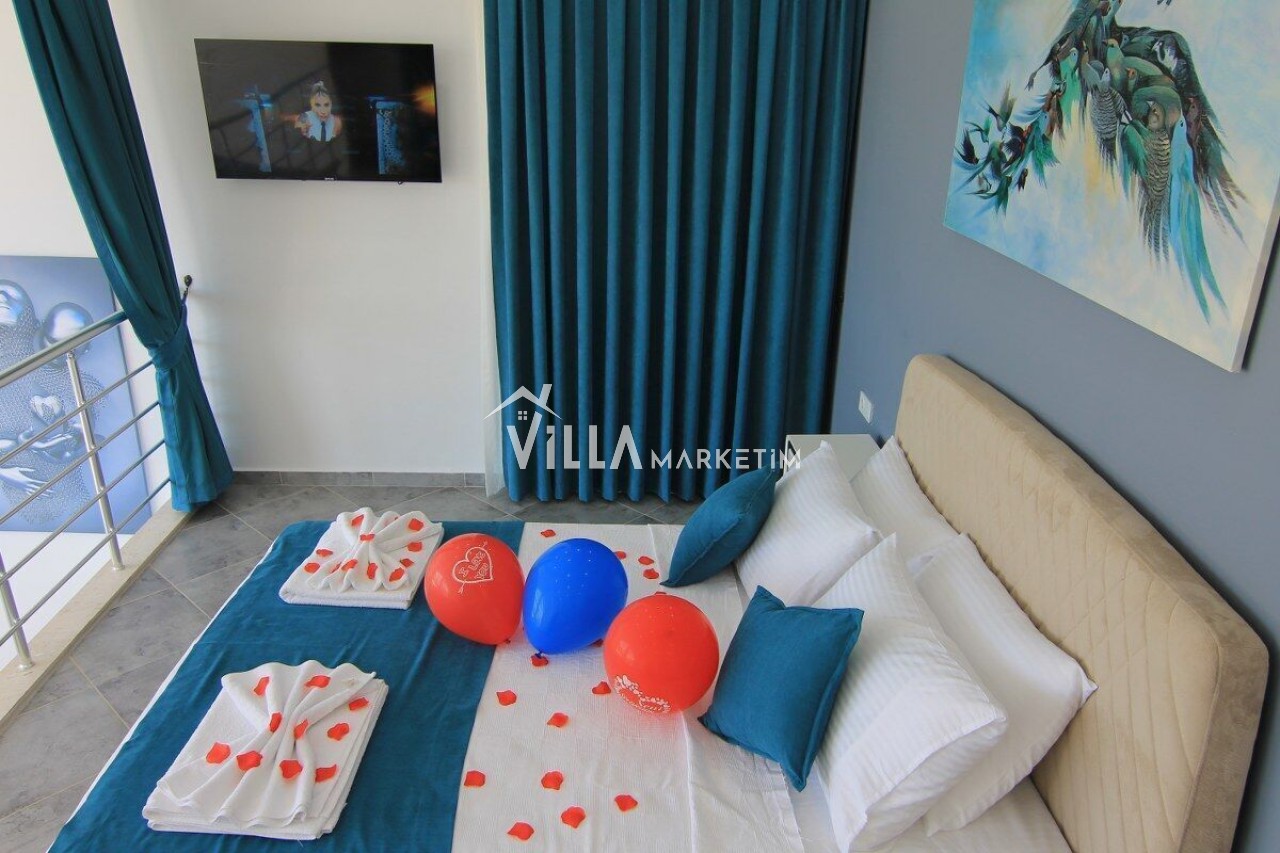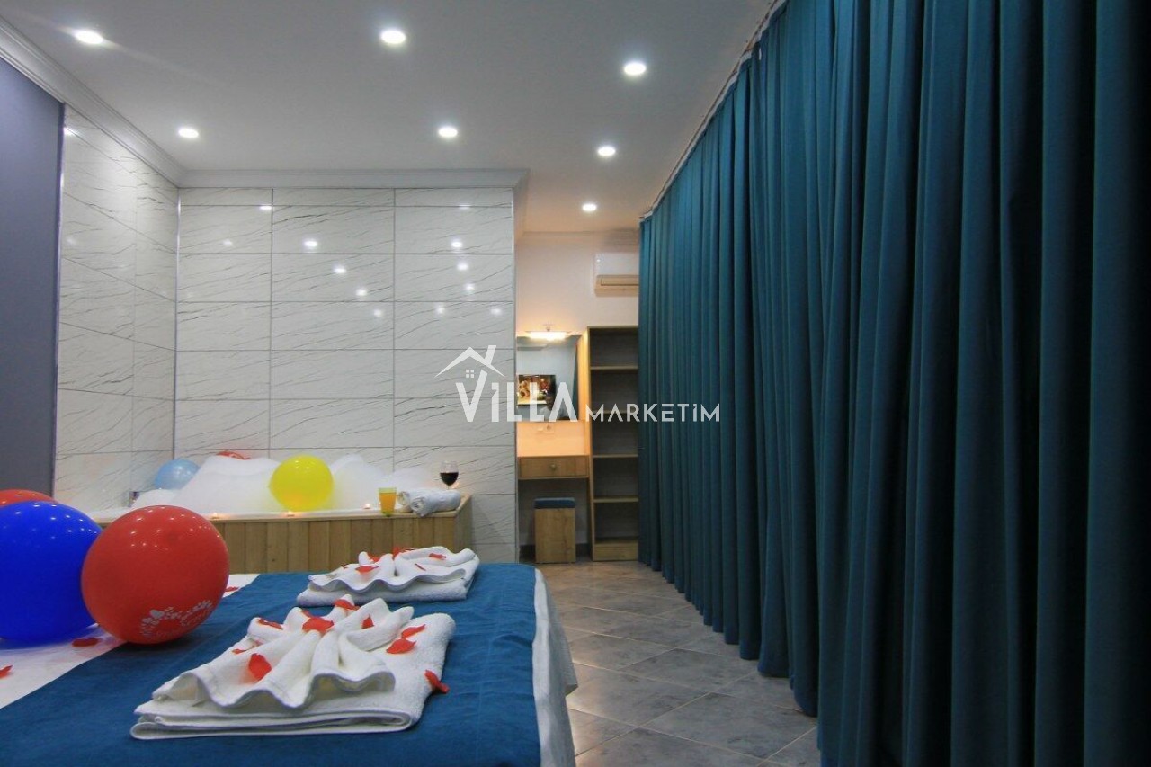 1. Yatak Odası : Süit odada çift kişilik yatak, klima, elbise dolabı, komodin, televizyon, jakuzi , banyo ve tuvalet bulunmaktadır. ( Asma katta bulunmaktadır. )