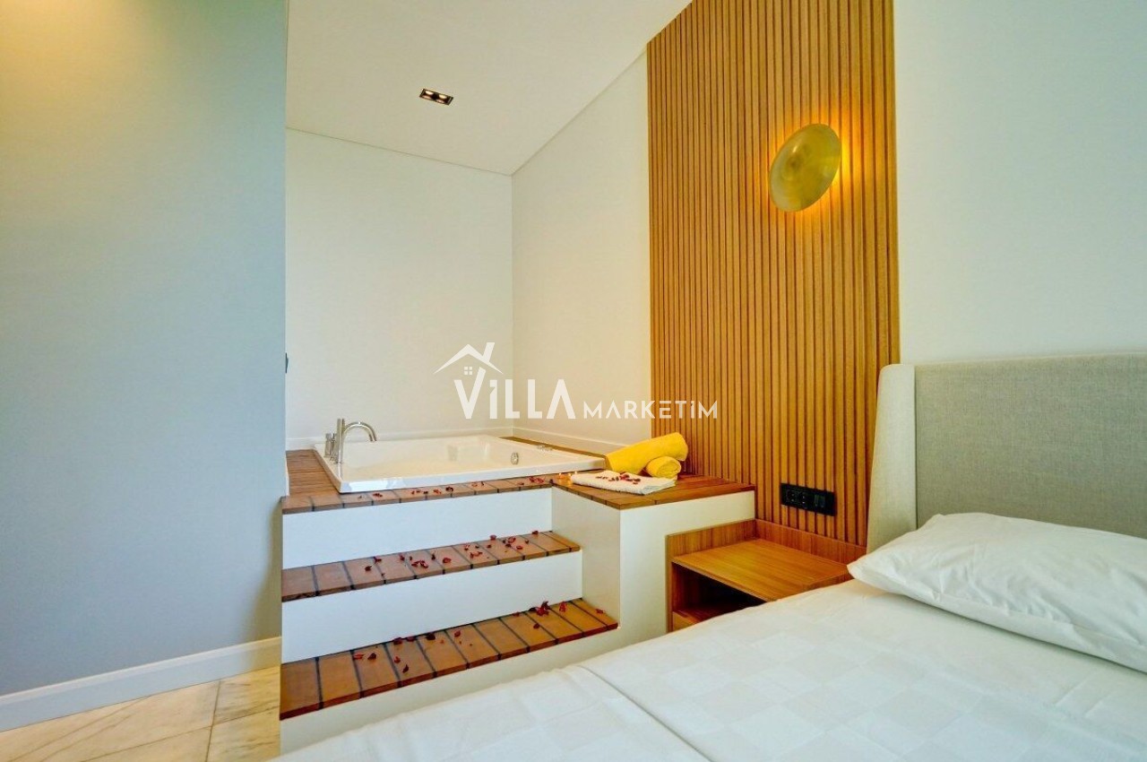 3. Yatak odası : Suit aile yatak odası, 1 tane çift kişilik yatak, komodin, klima, elbise dolabı, jakuzi ve banyo / Wc yer almaktadır.