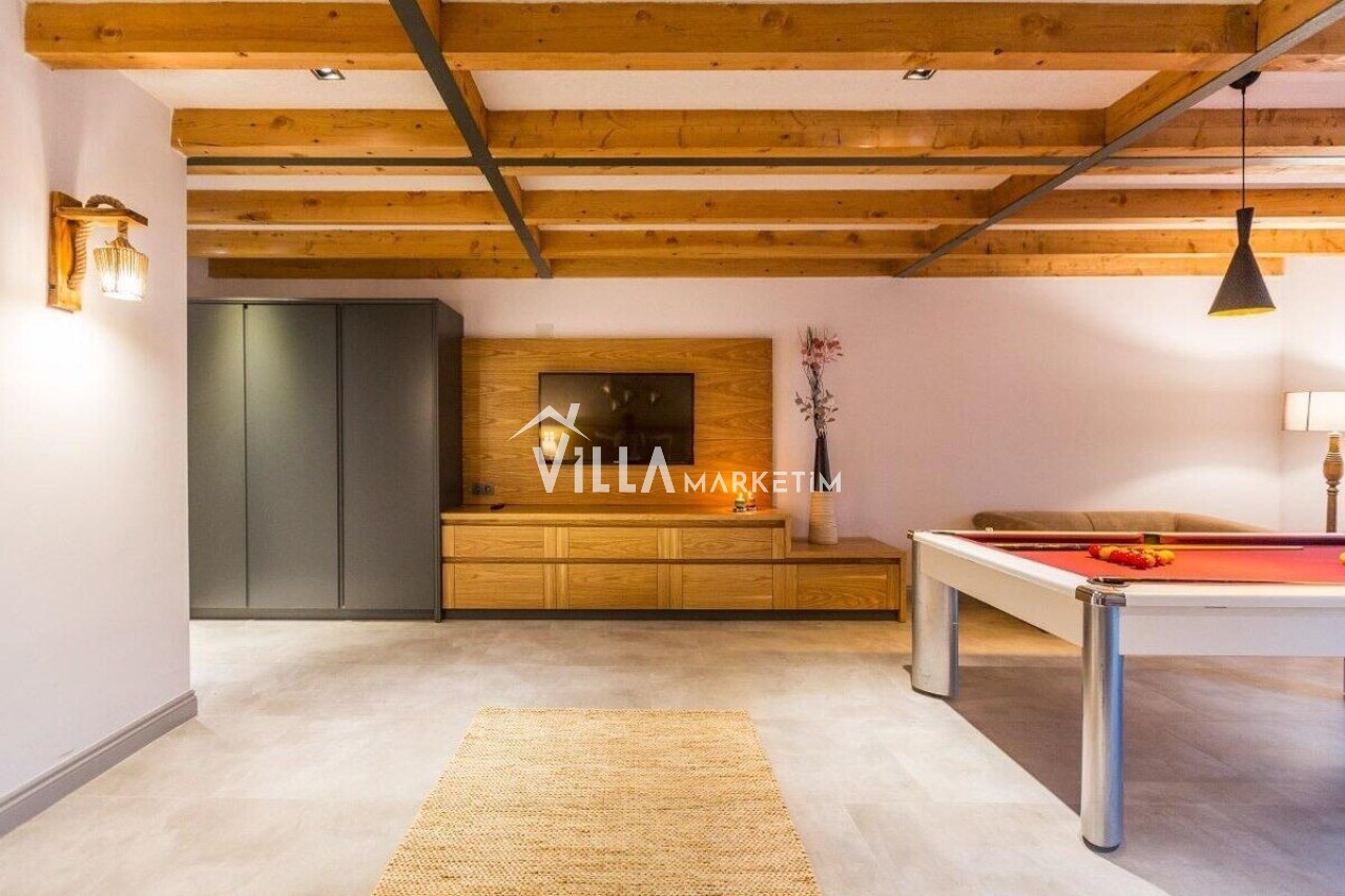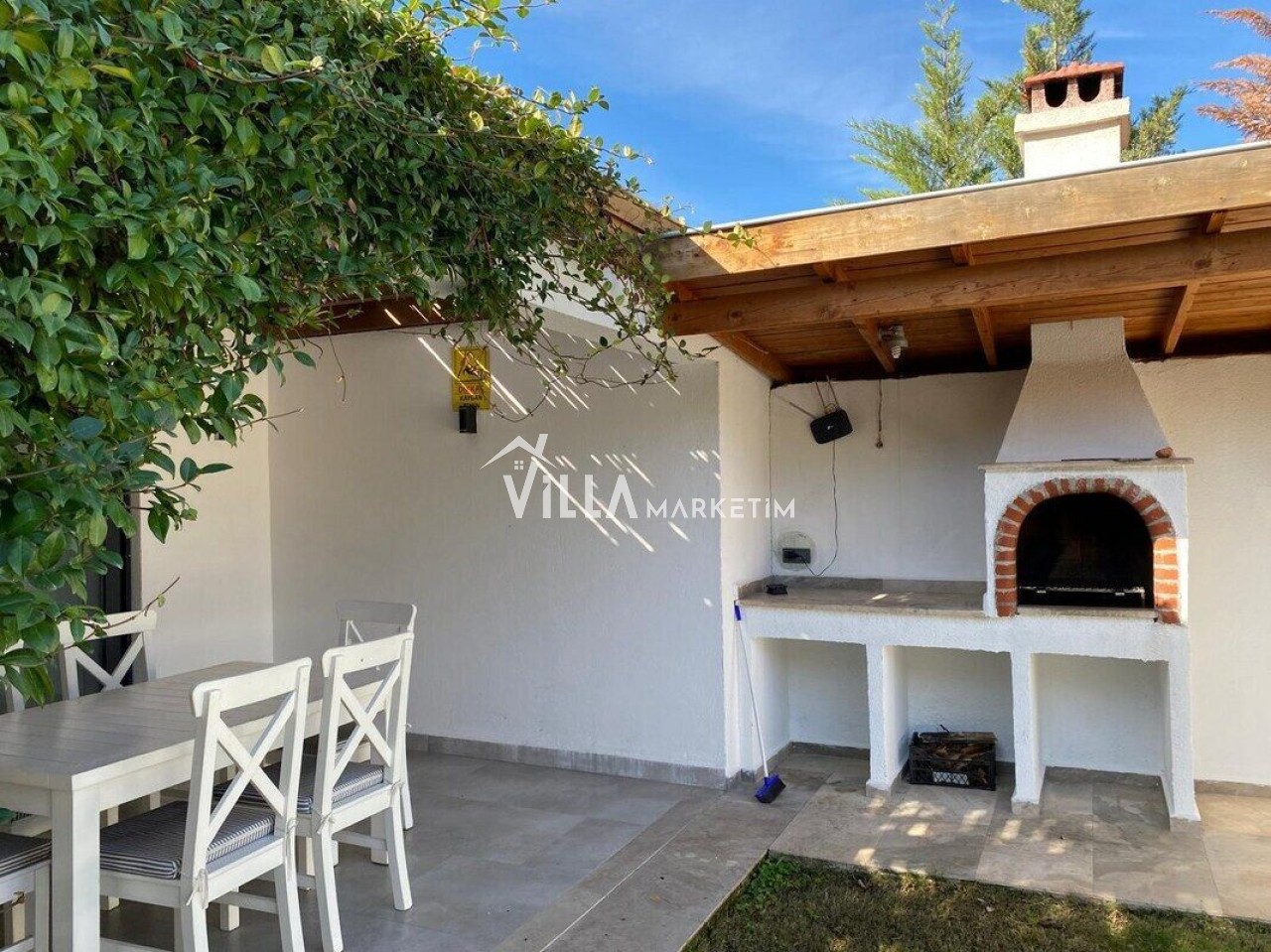 Bahçe : Özel bahçede yüzme havuzu, bahçe oturma grubu, çardak, güneş şemsiyesi, şezlonglar, yemek masası, sandalyeler ve barbekü bulunmaktadır.