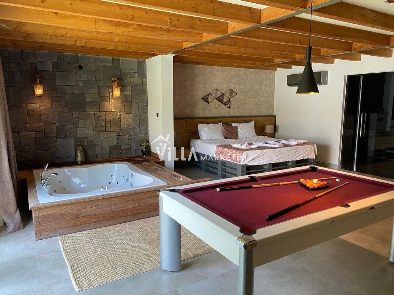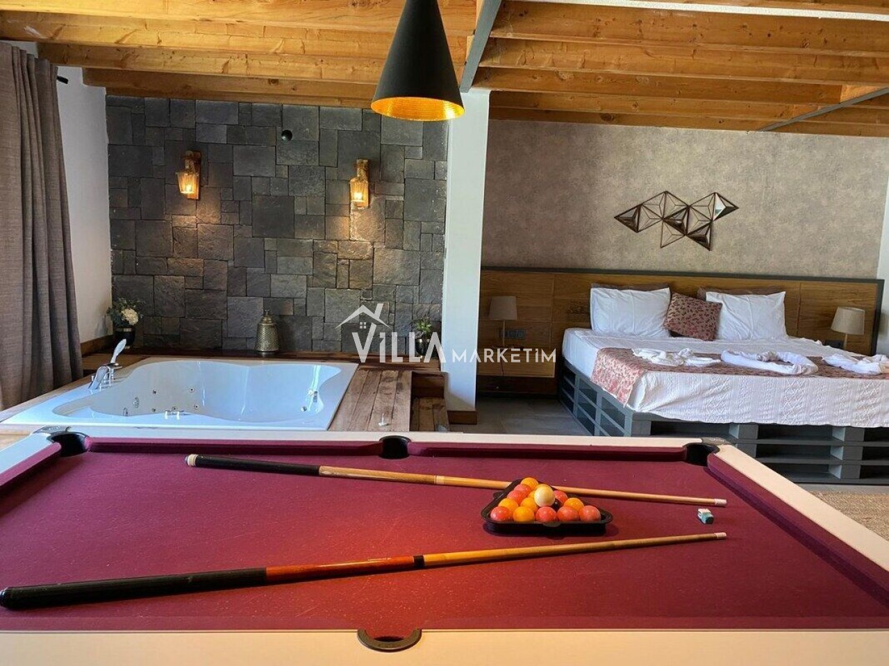 1. Yatak Odası : Klimalı yatak odasında 1 adet çift kişilik yatak vardır. Özel banyo, elbise odası, jakuzi, bilardo masası, LCD TV, WC ve duş bulunmaktadır. Yatak odasından havuz kenarına çıkış bulunmaktadır.