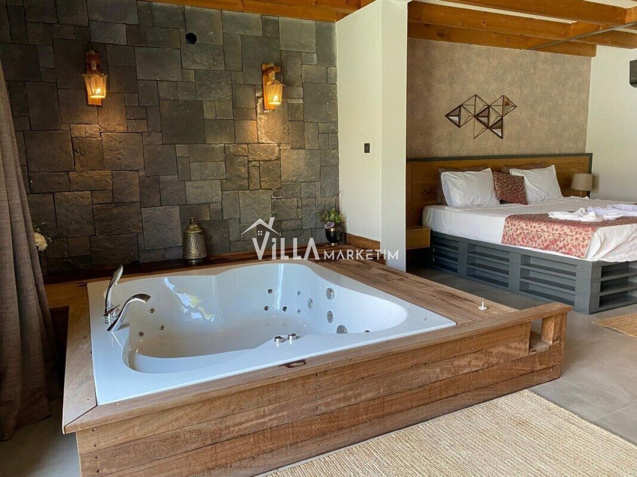 Ekstralar : Villa misafirlere temiz bir şekilde teslim edilmektedir. Salon ve yatak odaları klimalıdır. Bahçe & havuz bakım ve temizliği günde 1 defa yapılmaktadır. Villa içerisinde internet için kablosuz internet ve 1 yatak odasında jakuzi vardır.