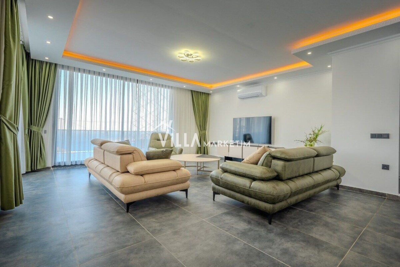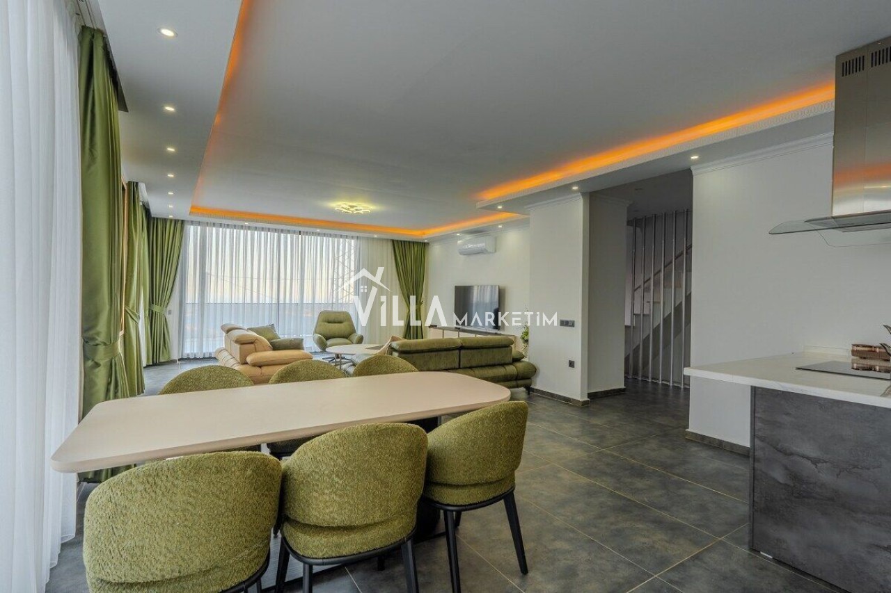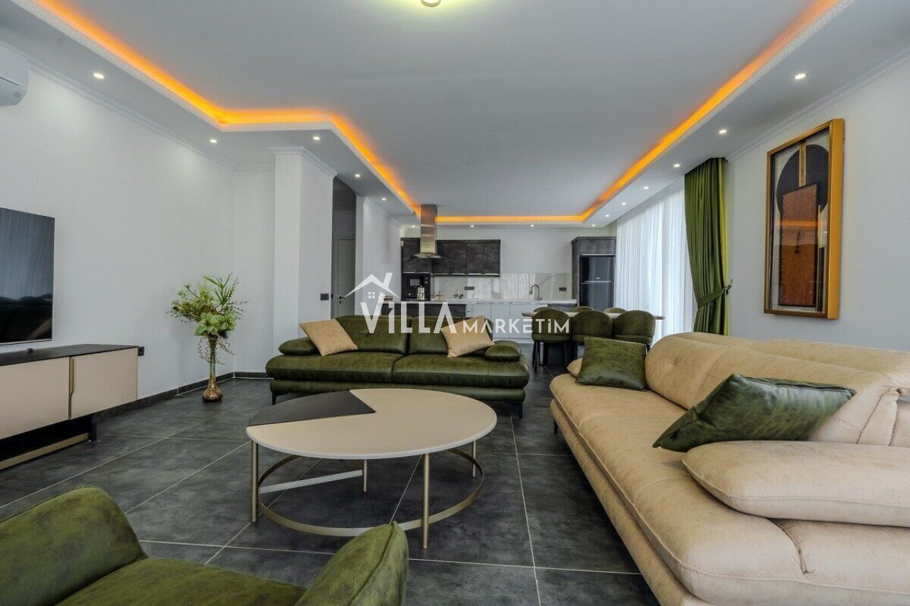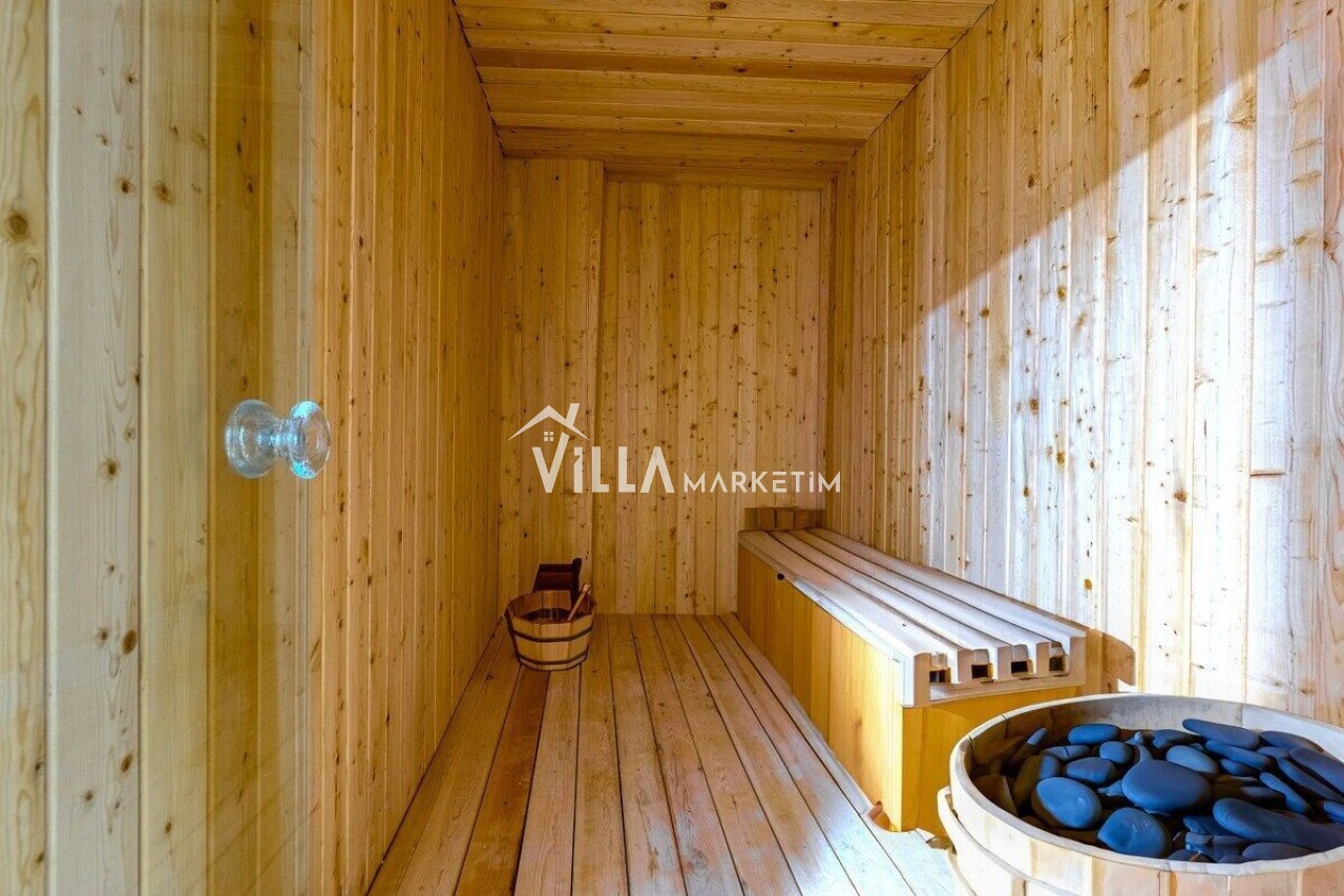 Salon : Modern ve lüks dizayna sahip salon içerisinde konforlu oturma grubu, TV, DVD oynatıcı, klima ve internet yer almaktadır. Salondan havuz terasına geçiş vardır.