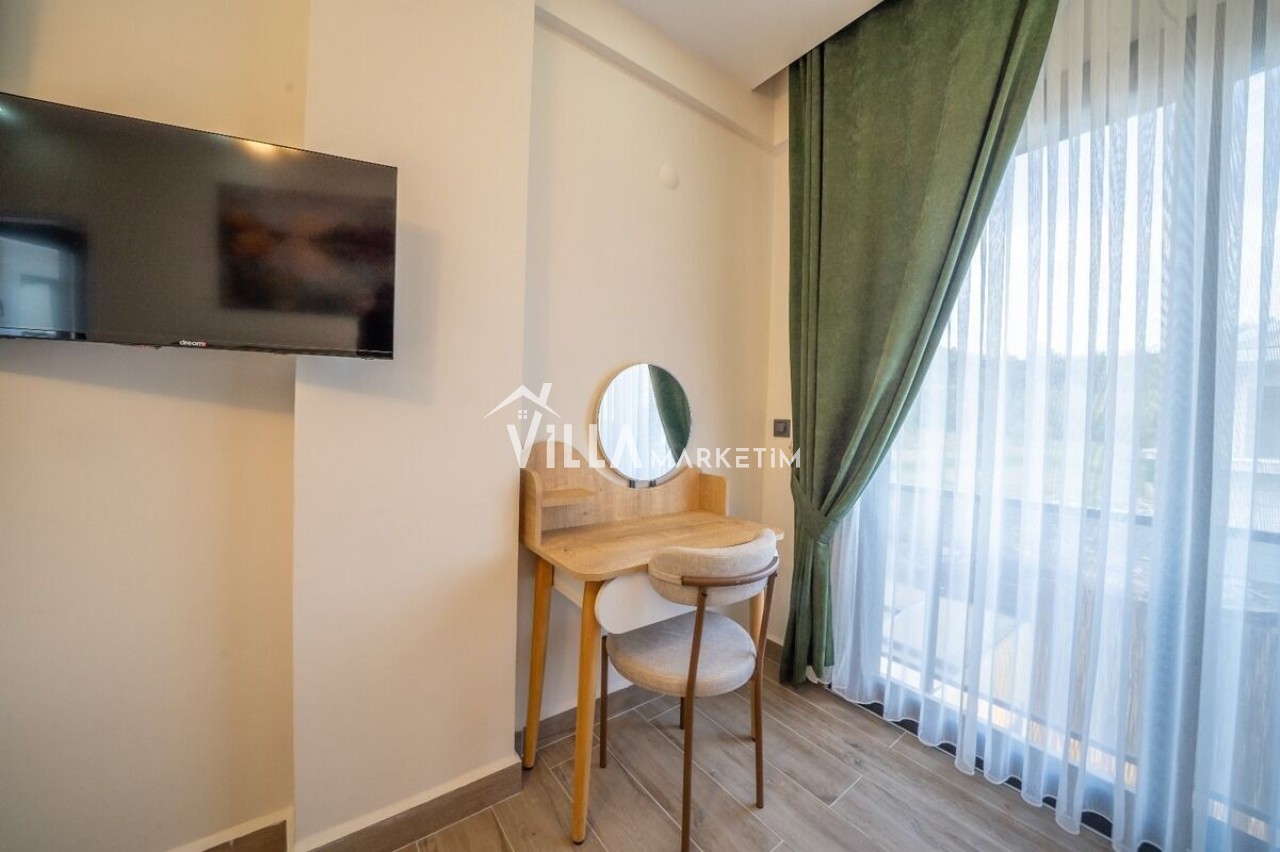 Salon : LCD TV, uydu alıcısı, mama sandalyesi, oturma grubu, klima, yer almaktadır. Havuz katında bulunan salondan havuz kenarına direkt çıkış bulunmaktadır.