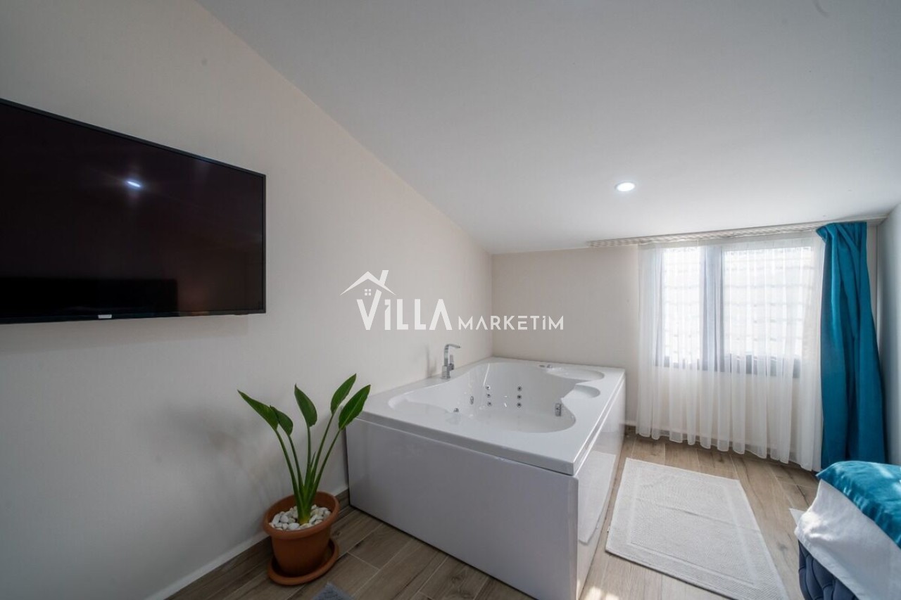 1. Yatak Odası : 1 Çift Kişilik Yatak + Klima + Komidin + Elbise Dolabı + jakuzi + TV